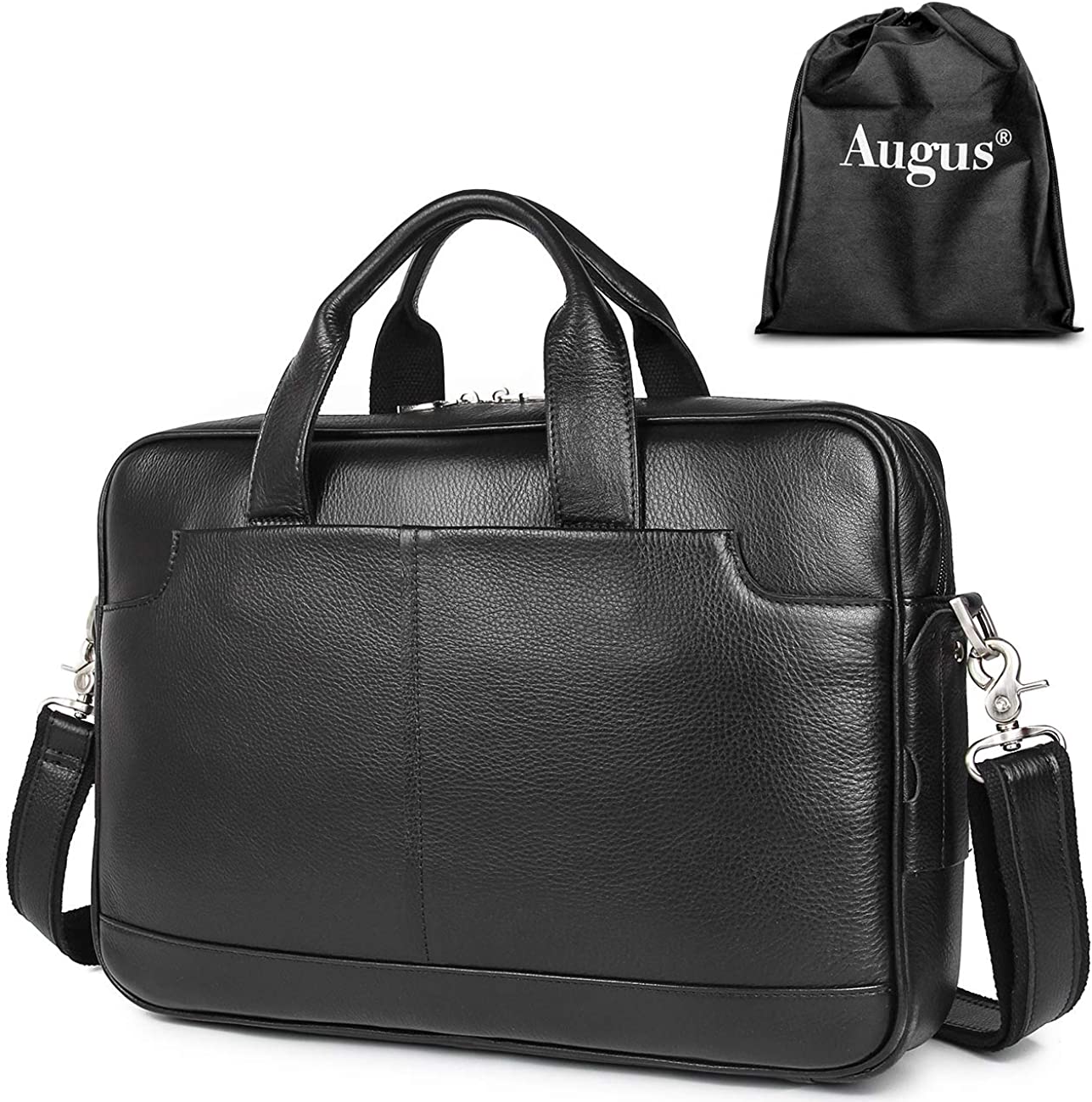 1) Fashioned from high-quality classic black cow leather, this beauty comes with plenty of space for your laptop, documents, books, and more.