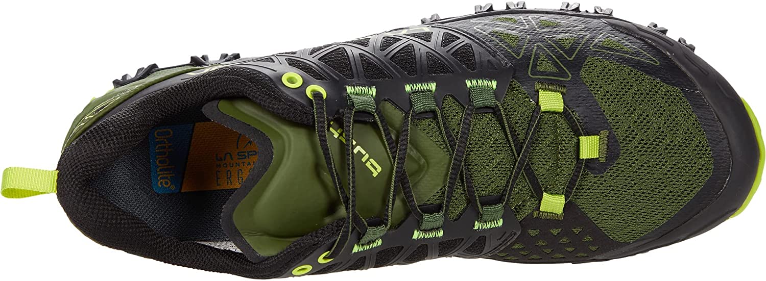GET A GRIP - FriXion XT V-Groove2 outsoles incorporate dual-compound rubber that delivers superb grip on any type of terrain, dry or wet; La Sportiva's famous Impact Brake System gives you 20% more traction with 20% less impact