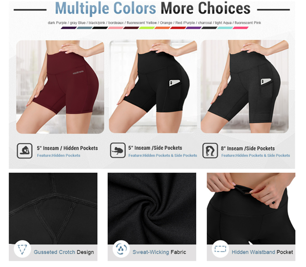 • ★Multi-function pockets★ Our women compression biker shorts with side or waistband pockets for women are convenience for storing cell phone, sweat towel, cash, keys, cards and other small items.(the style of 5" Inseam-Hidden pocket no side pockets)