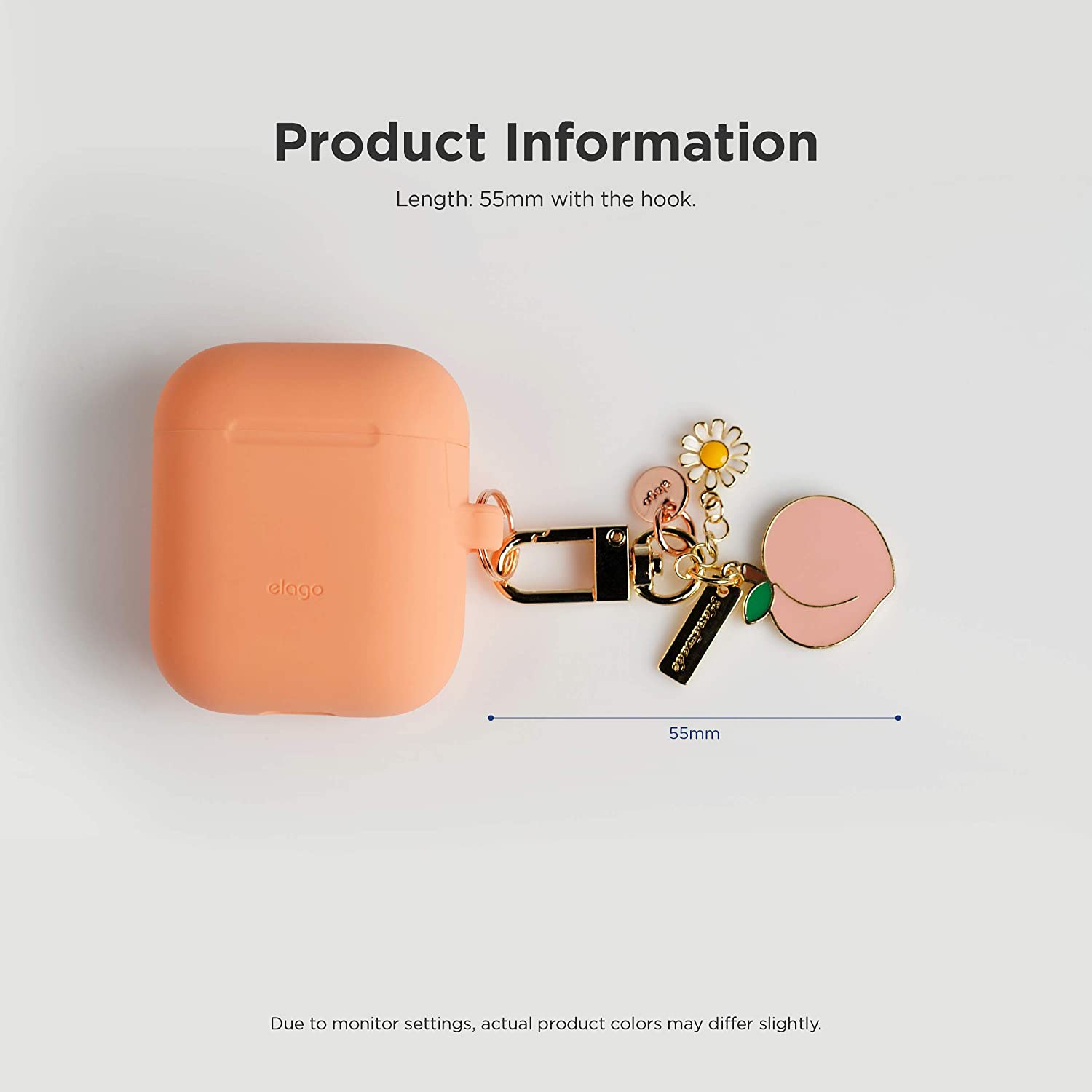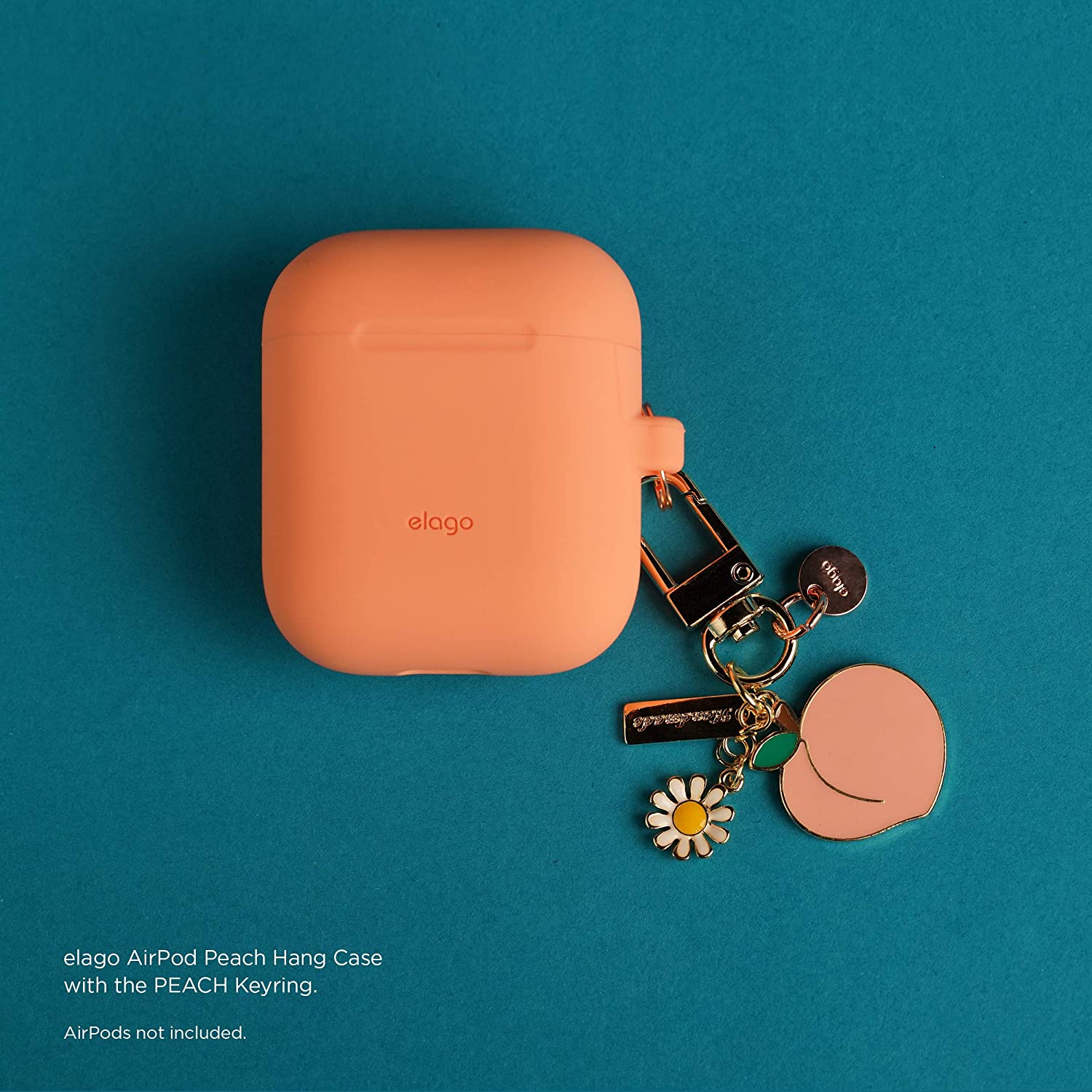 elago AirPods Keyring [PEACH] - Charm for AirPods, Handbag, Tote, Purse, Backpack, Bag, Car Key, Durable Keychain, Sturdy material, Cute Accessories for Women