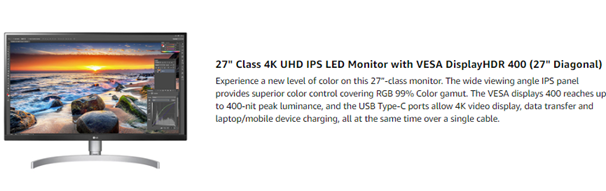 LG 27UL850-W 27 Inch UHD (3840 x 2160) IPS Display with VESA DisplayHDR 400 and USB Type-C Connectivity, White