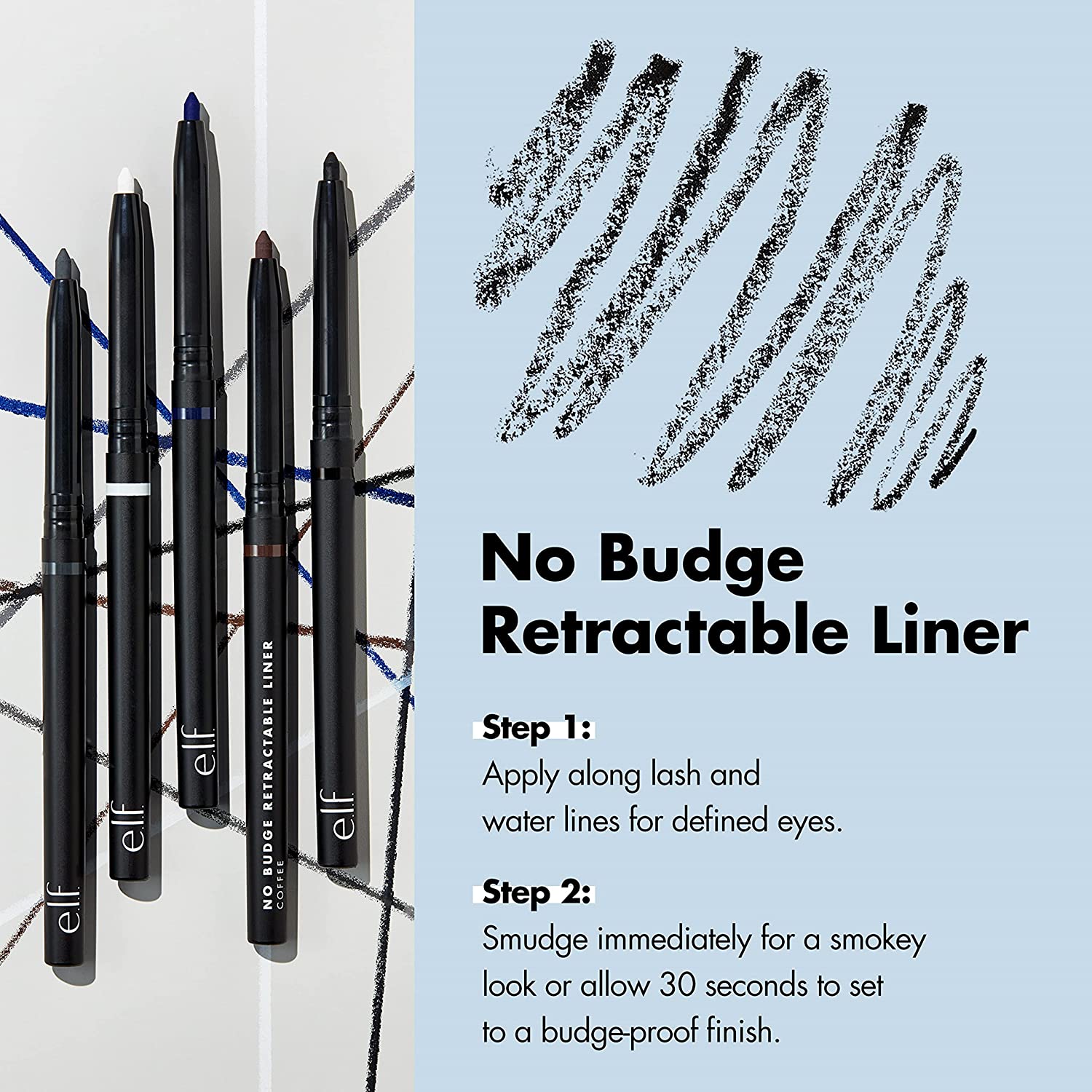 ULTIMATE EYE PENCIL: The e.l.f. No Budge Retractable Eyeliner is a waterproof, retractable eyeliner that checks all your pencil liner requirements.