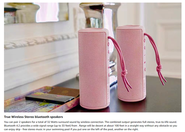 - [TWS Function] You can pair 2 bluetooth speakers for a total of 32 Watts surround sound. The combined output generates full stereo, true-to-life sound.