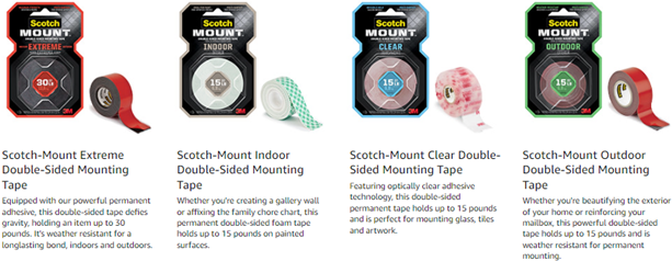 Scotch Indoor Double-Sided Mounting Tape is ideal for painted surfaces and allows you to quickly and easily beautify and organize your space. Whether you’re creating a gallery wall or affixing the family chore chart, this permanent double-sided foam tape holds up to 15 pounds and delivers a strong bond every time because of its 3M industrial strength adhesive. Your work is up and ready to admire in 30 seconds flat – no nails or hammer needed. Never let how you’re going to hang it get in the way of your creativity with the powerful adhesion of Scotch Indoor Double- Sided Mounting Tape.
