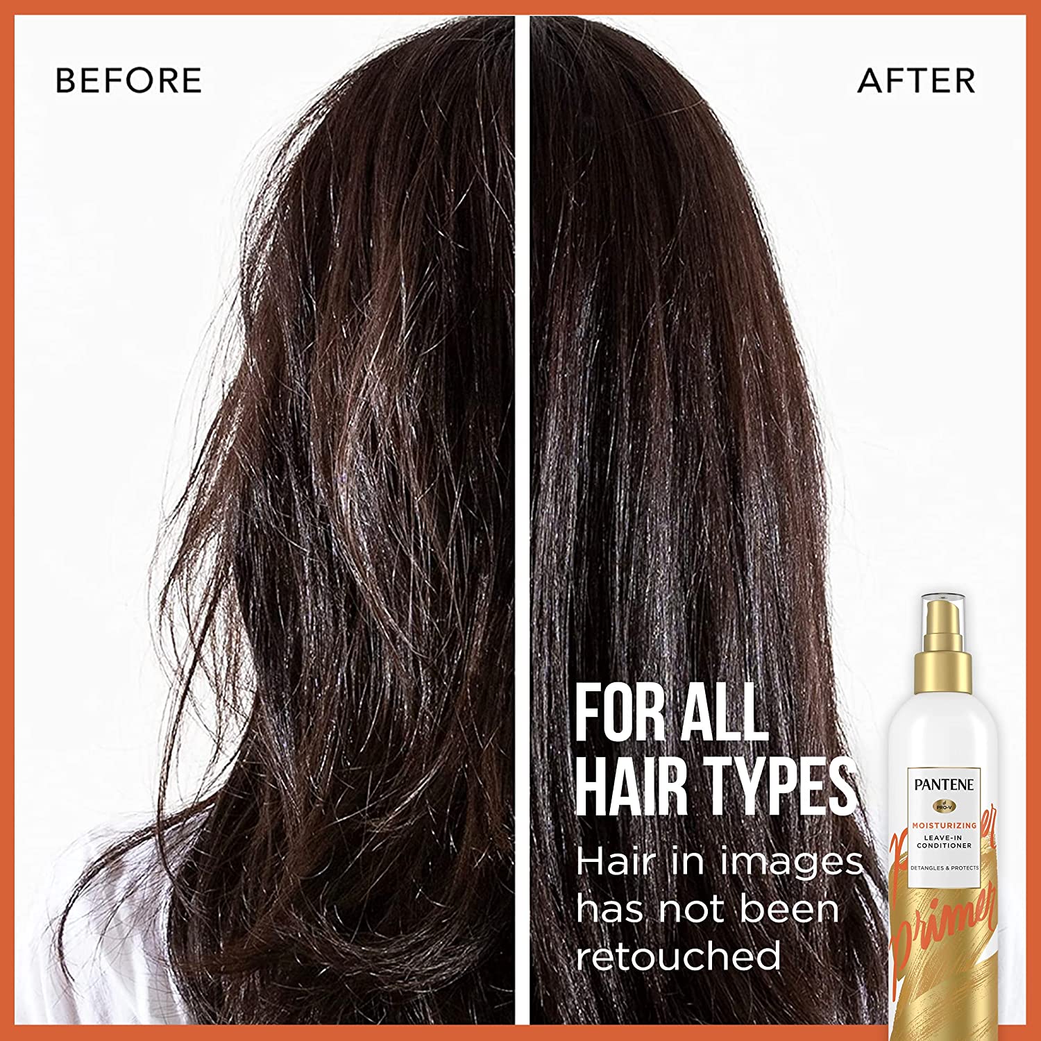 Spray some repair into your hair care. Help stop damage with Pantene Pro-V Nutrient Boost Repair & Protect Detangler. This leave-in conditioning mist treatment separates hair strands for easy styling, and it helps restore your hair to be soft and smooth with a healthy-looking shine. Enriched with antioxidants to reduce protein loss, Repair & Protect Detangler helps hair stay stronger against damage. The lightweight formula helps transform hair from dry and brittle to healthy and soft for a #greathairday. vs. non-conditioning shampoo.