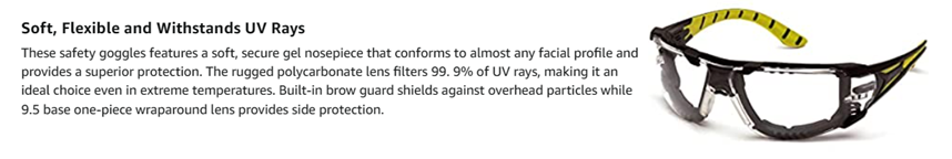 • Safety from all directions: Built-in brow guard shields against overhead particles while 9.5 base one-piece wraparound lens provides side protection