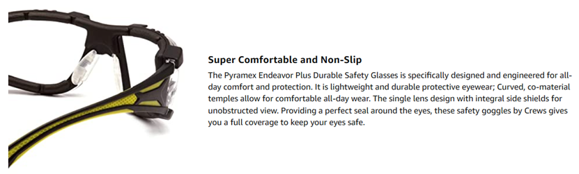 • Incredibly comfortable: Lightweight and durable protective eyewear; Curved, co-material temples allow for comfortable all-day wear