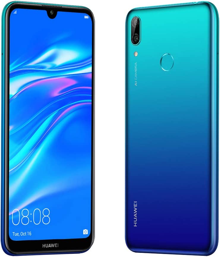 Huawei Y7 2019 (32GB, 3GB) 6.26" Dewdrop Display, 4000 mAh Battery, 4G LTE GSM Dual SIM Factory Unlocked Smartphone (Dub-LX3) - International Version, No Warranty (Blue)