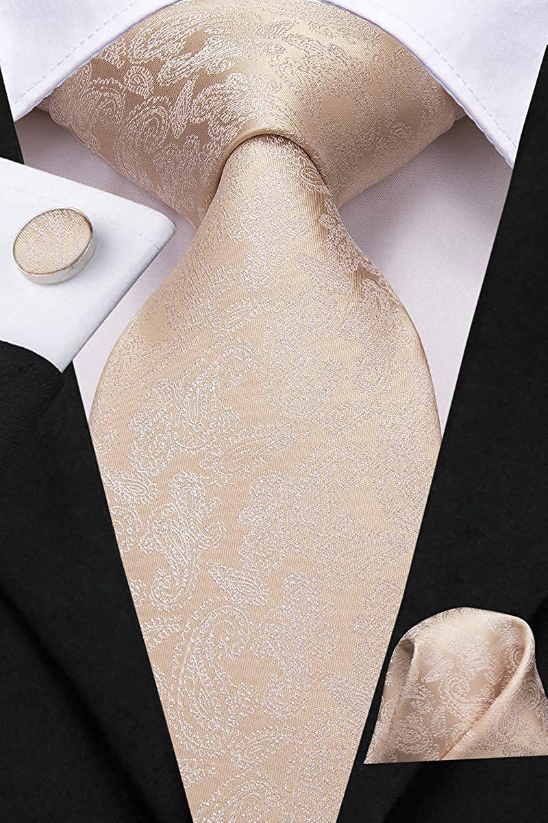 Hi-Tie Silk Paisley Necktie and Pocket Square Cufflinks Set