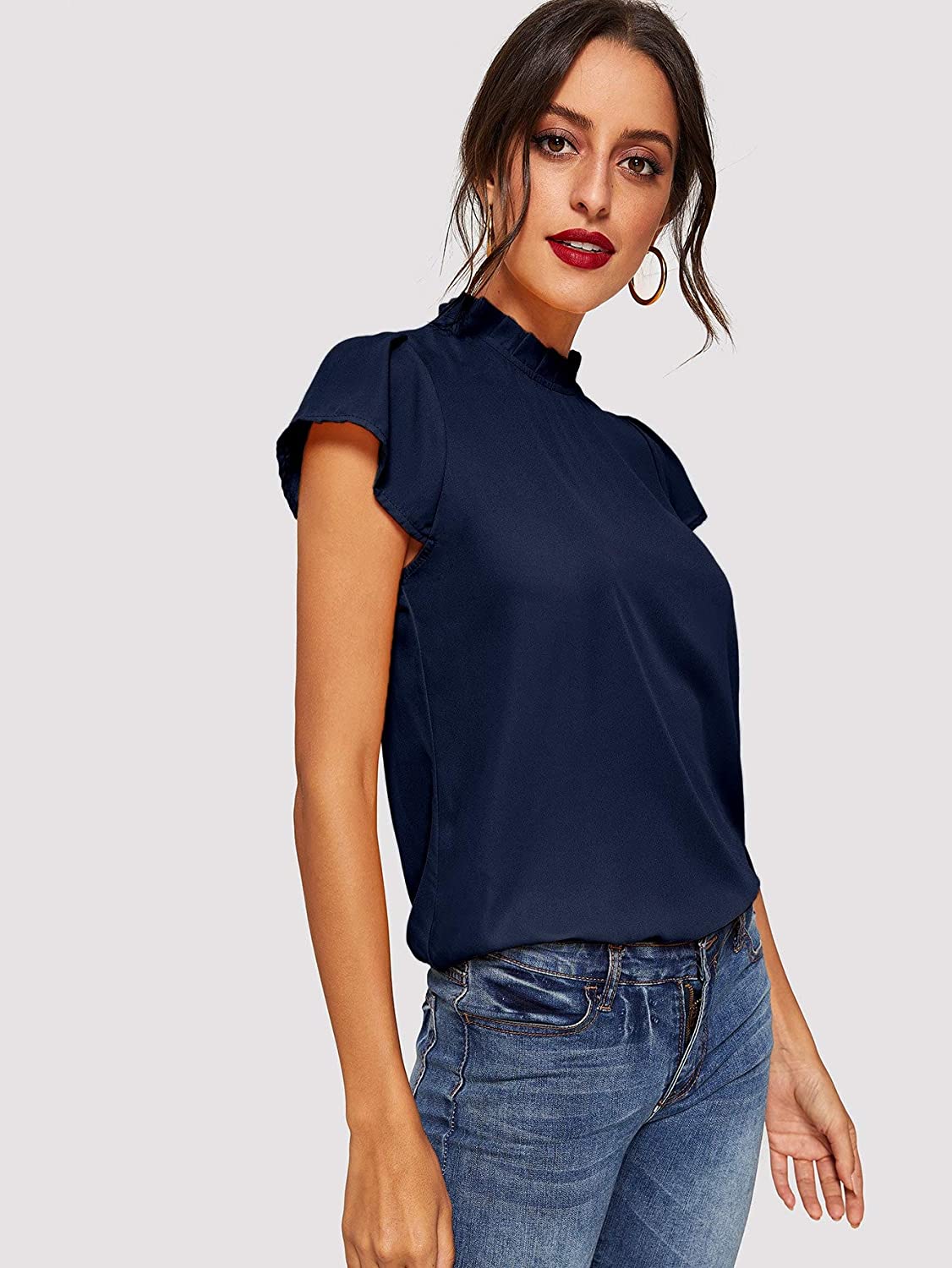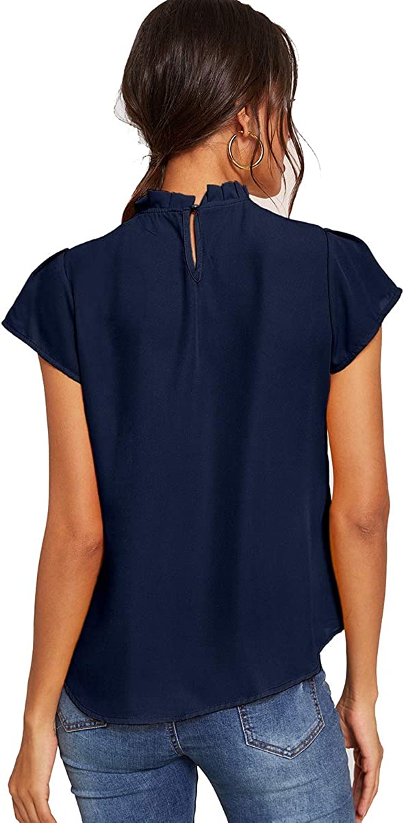 Romwe Women's Elegant Short Sleeve Mock Neck Workwear Blouse Top Shirts