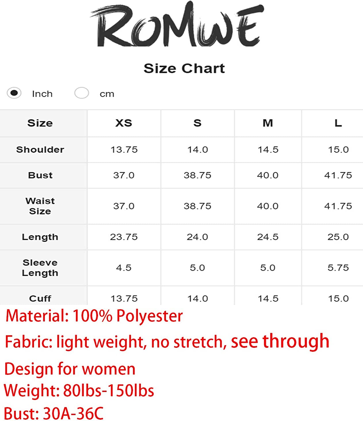 XS--Shoulder: 13.4inch, Bust: 37.01inch, Length: 23.62inch, Sleeve: 4.65inch