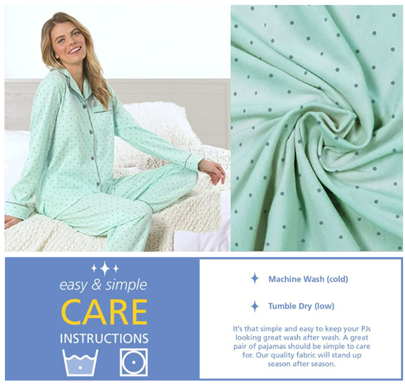 • Find the Perfect Size - Our pajamas for women have been designed by sleepwear experts to fit a range of bodies; below you will find a size chart to help you find your perfect fit.
