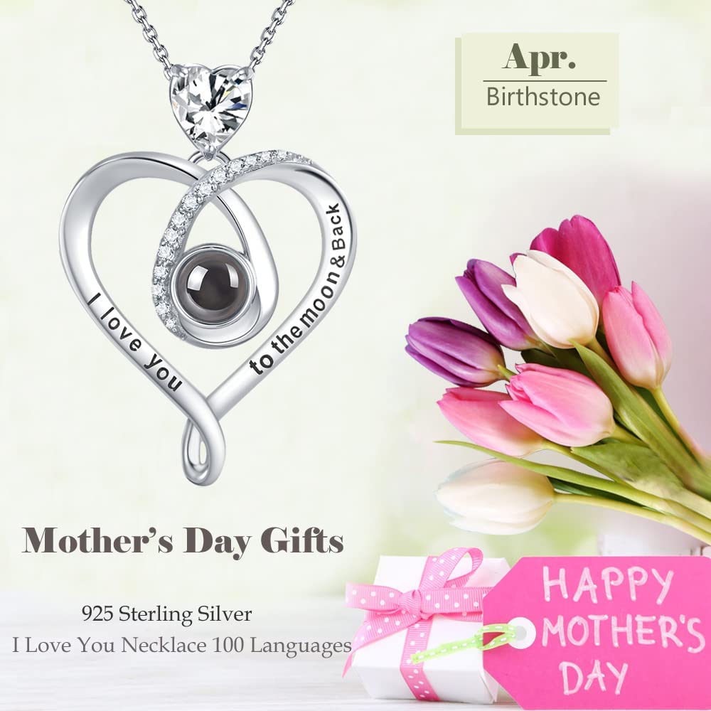• ❤️ Simulated Diamond Necklace - Simulated diamond april birthstone and 103 languages Love Stone setting in the elegant design hearts infinity necklace and shining effect of this exceptional pendant make it the perfect chioce for any occasion.
