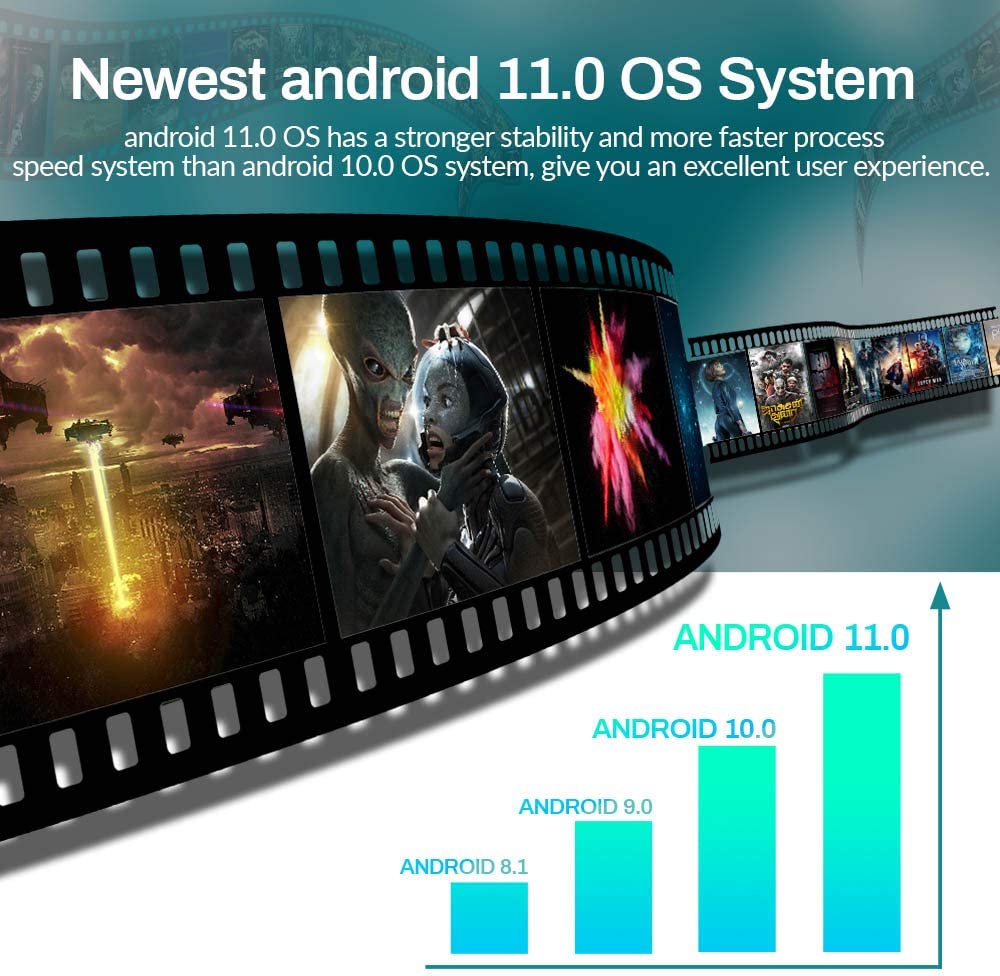 • 【Newest Android 11.0 OS】Android tv box equipped with Latest Android system, powered by RK3318 Quad core cortex-A53 Ultra high frequence CPU, which ensure the android box running stable and smooth for loading movies, pictures and games without buffer.