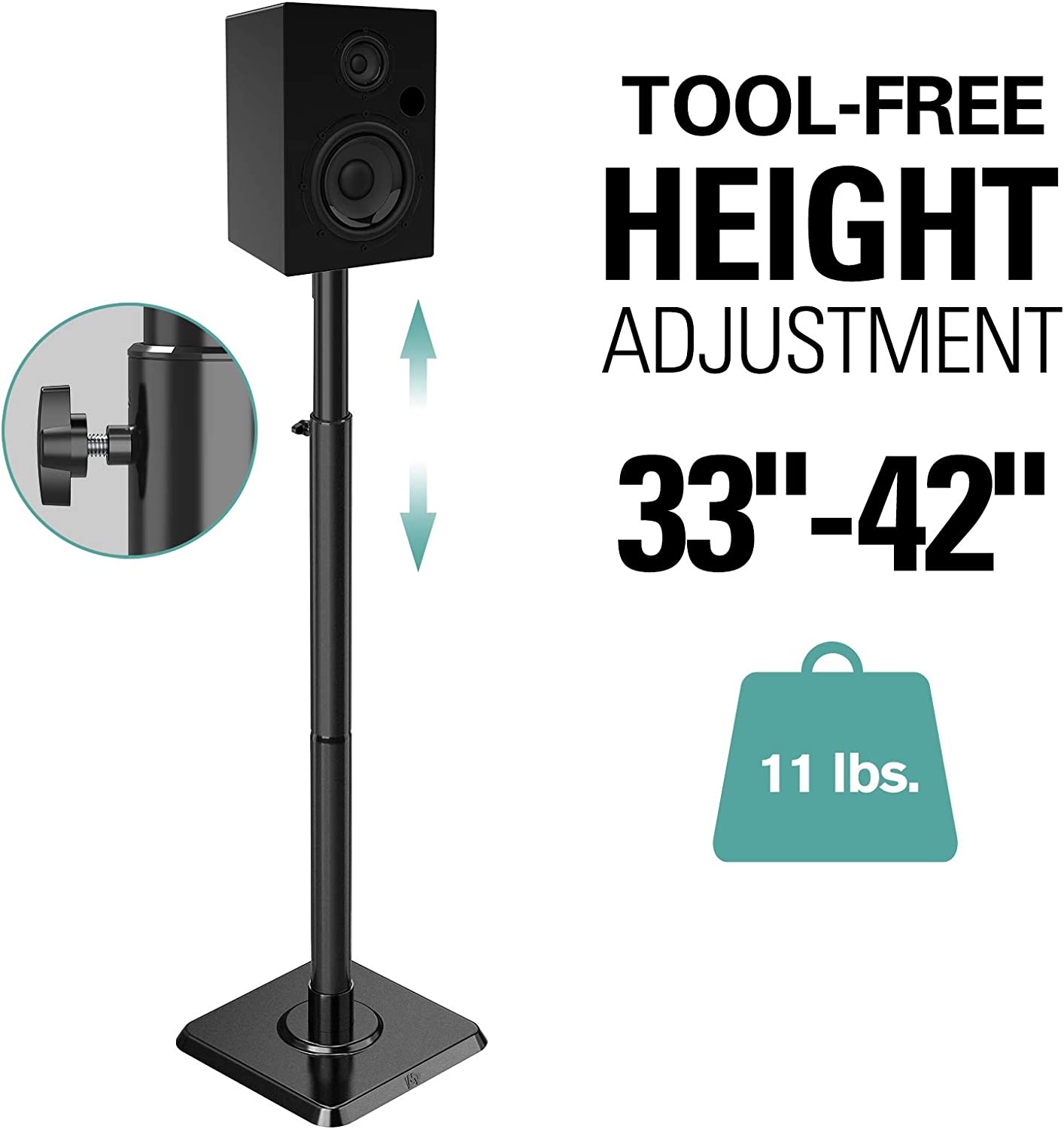 HEIGHT ADJUSTMENT - Rear speaker stands with extendable tubes allow to adjust the height from 33" to 42" for optimal listening experience. This surround sound speaker stands are perfect for your home/theater entertainment system
