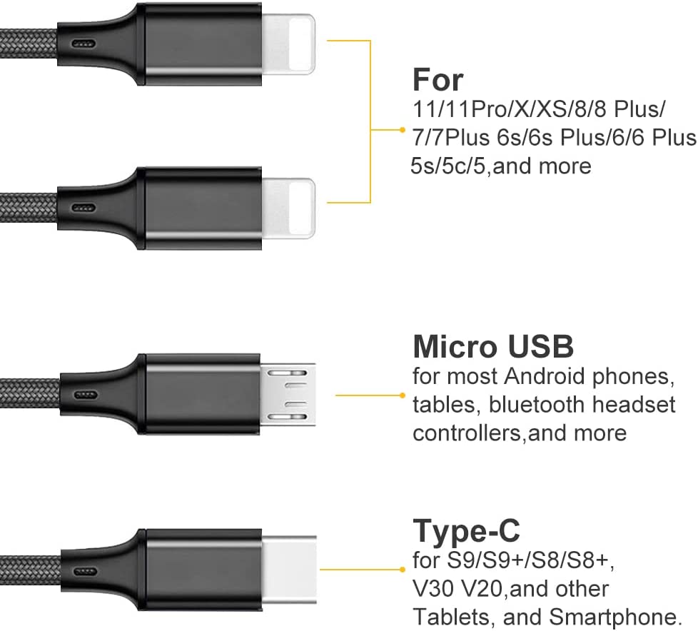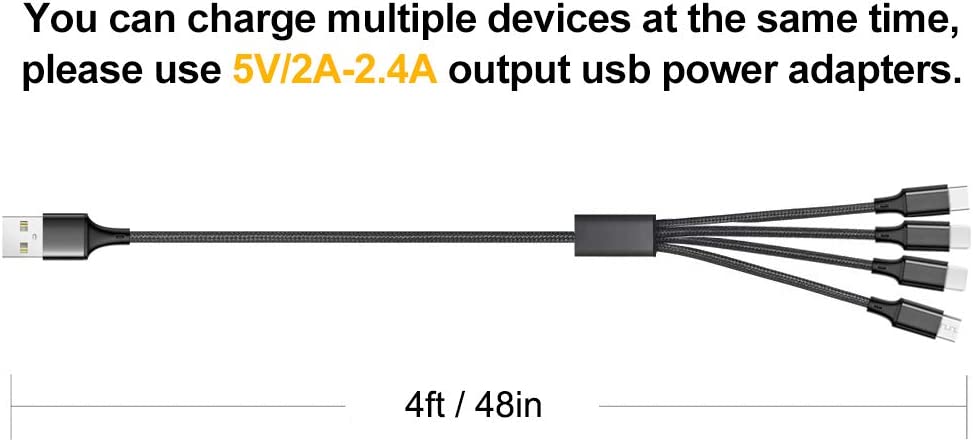 • ✔Perfect Length: 2Pack 4ft multiple phone charging cable enable you to charge your phone at ease, not restricted by the length of cable. And it's super handy to carry. Bring one multi charger cable, meets all your demand.