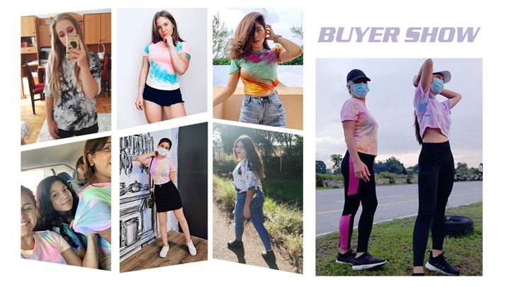SweatyRocks Women's Tie Dye T-Shirt Rolled Short Sleeve Crop Tops