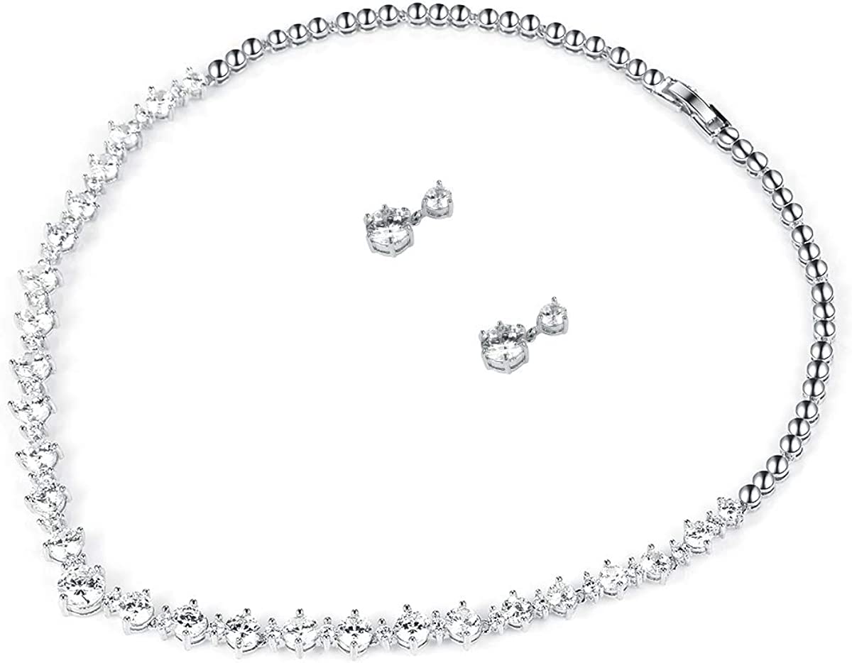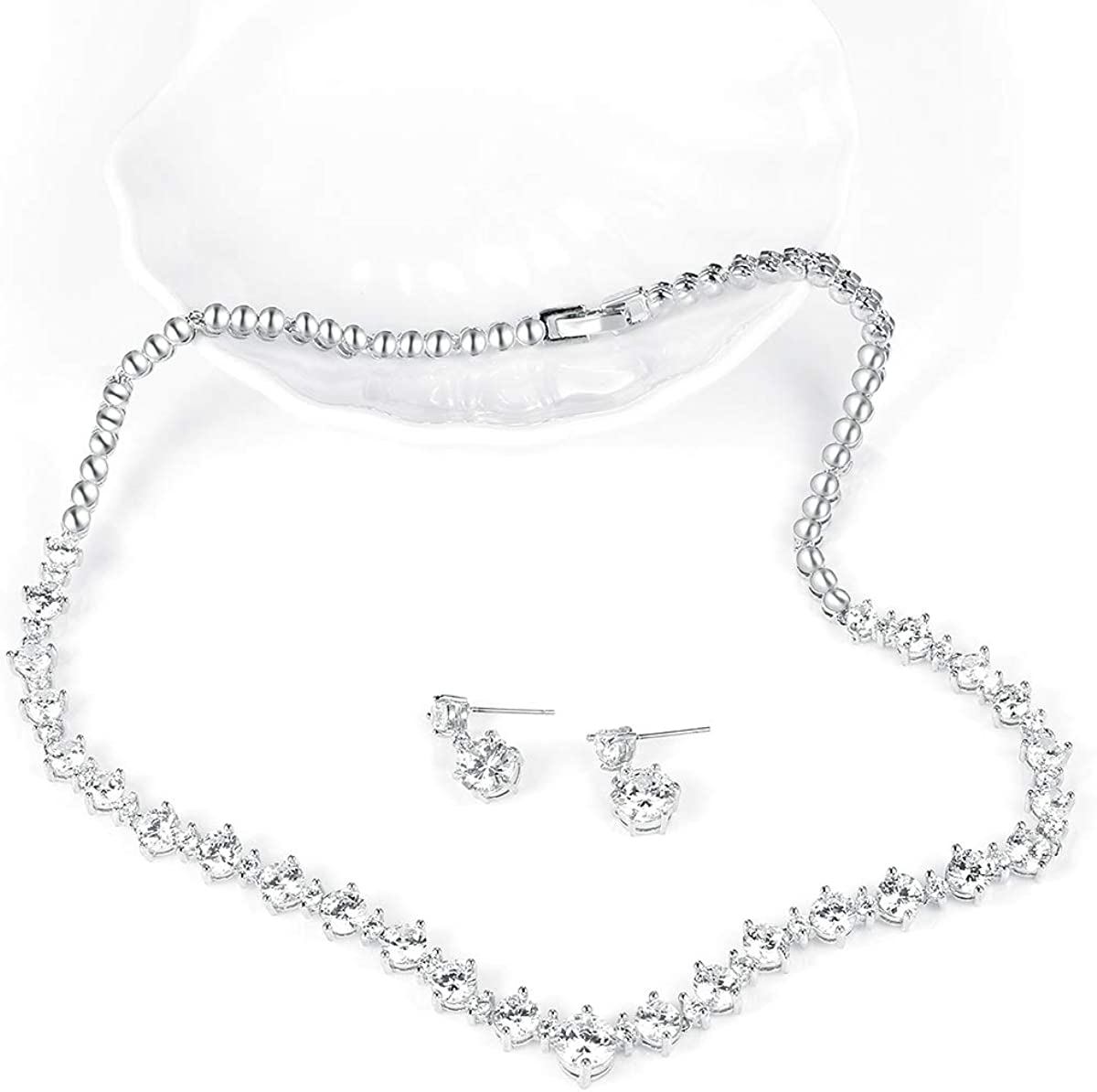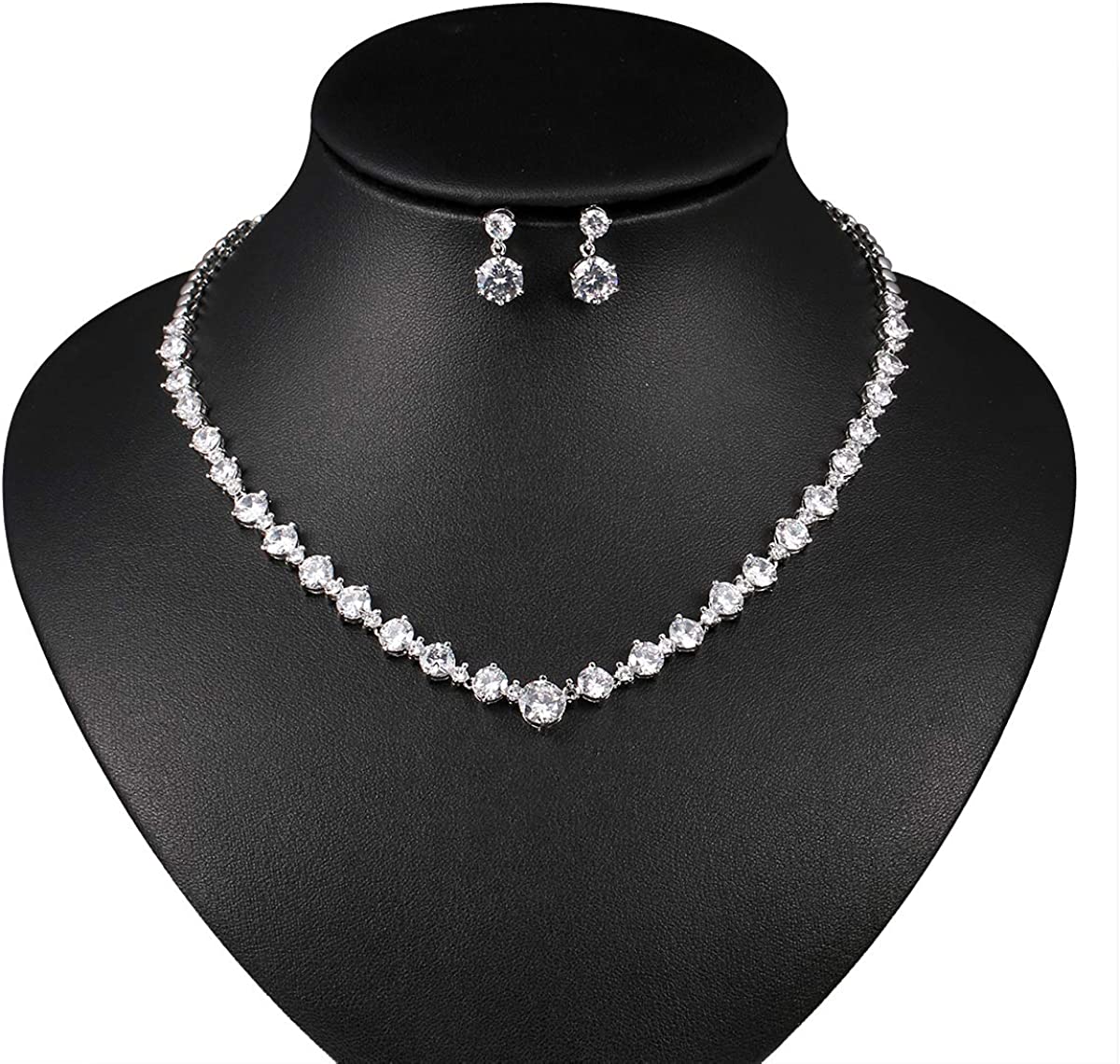 WeimanJewelry White Gold/Gold/Rose Gold Plated Women Cubic Zirconia Round Cut CZ Bridal Necklace and Drop Earring Set for Bride Wedding