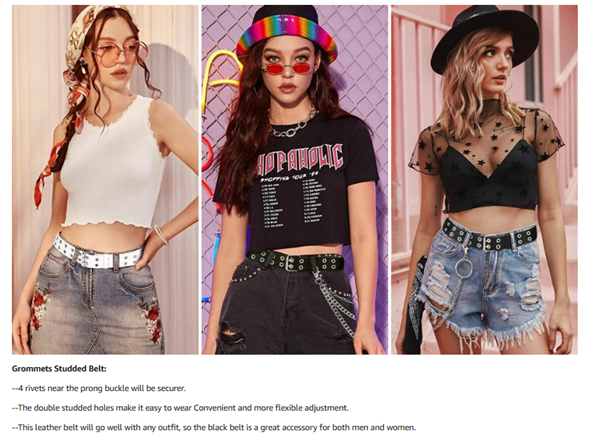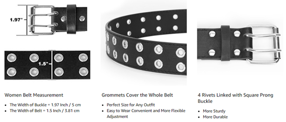 ?Stylish Punk Belt: The double prong buckle really compliments the belt style and keeps the belt secure around your waist. The width of the buckle is about 1.97". Stylish square buckle match with studded grommet strap. This punk belt will easily give your stylish look. This belt is a great addition for any punk/goth/etc look for women.