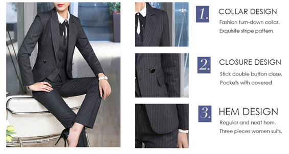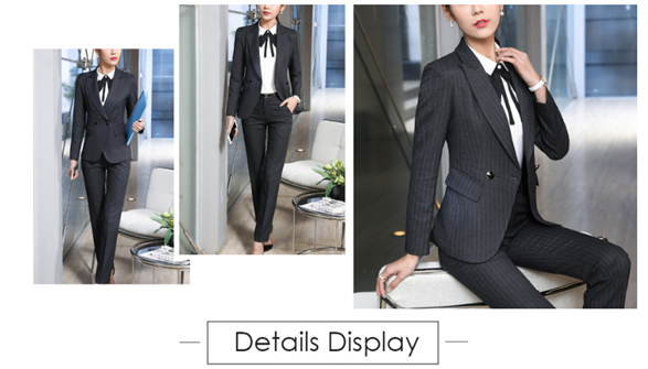 • 【Top】-Fashion notched lapel,and thick shoulder pads.Exquisite and stick double closure fasten the suit.Practical front pockets with covered placket.Simple long sleeve cuffs design,unique strip pattern design,waisted,regular and neat blazer hem,single-breasted button vest.
