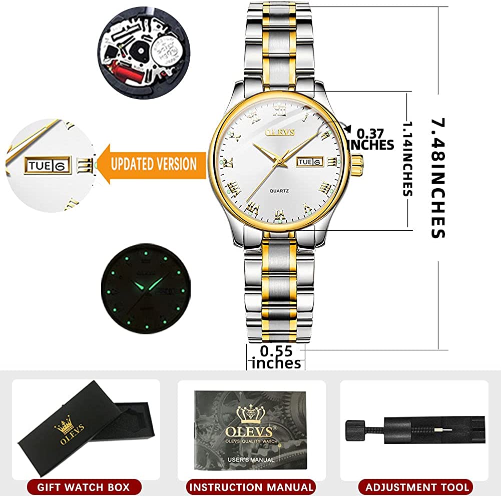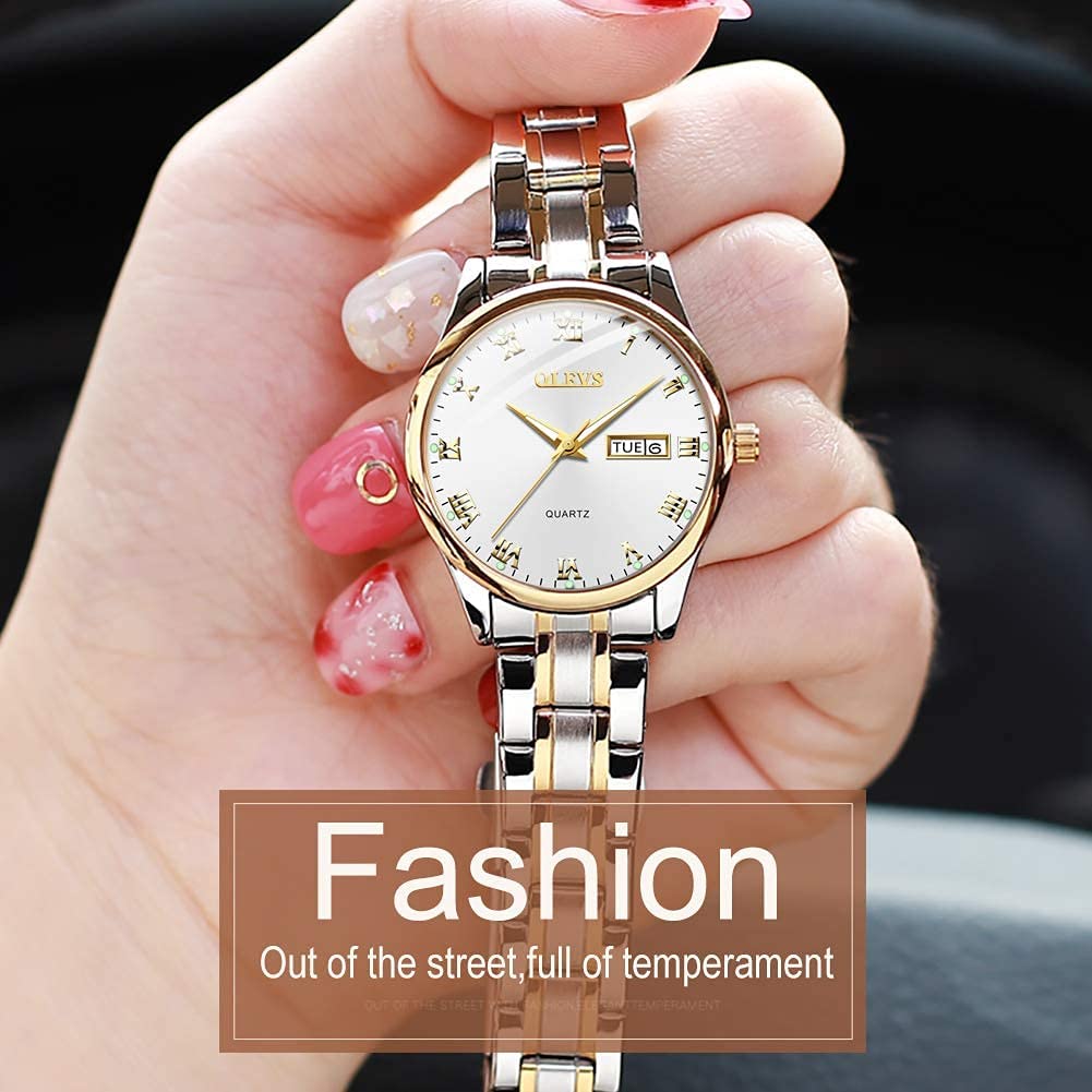• ❤️【Design 】Fashion quartz ladies watch,women watch with date,Work is very accurate.Business lady watch with roman numerals.Luminous woman watch,Lady Watches stainless steel is scratch-resistant and durable.【WE PROVID】Free Adjust Steel Belt Tool -can be adjusted according to the size of the wrist