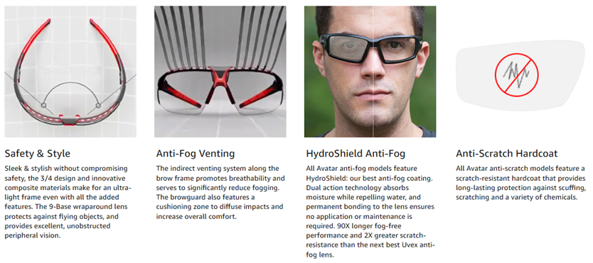 Honeywell UVEX AVATAR RED/BLACK FRAME GRAY LENS HYDROSHIELD ANTI-FOG COATING S2861HS
