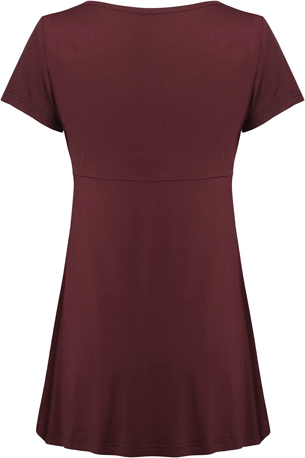 Tencole Womens Short Sleeve Summer Tunic Tops for Leggings Loose Fit Hide Belly Shirts Empire Waist Casual Tops