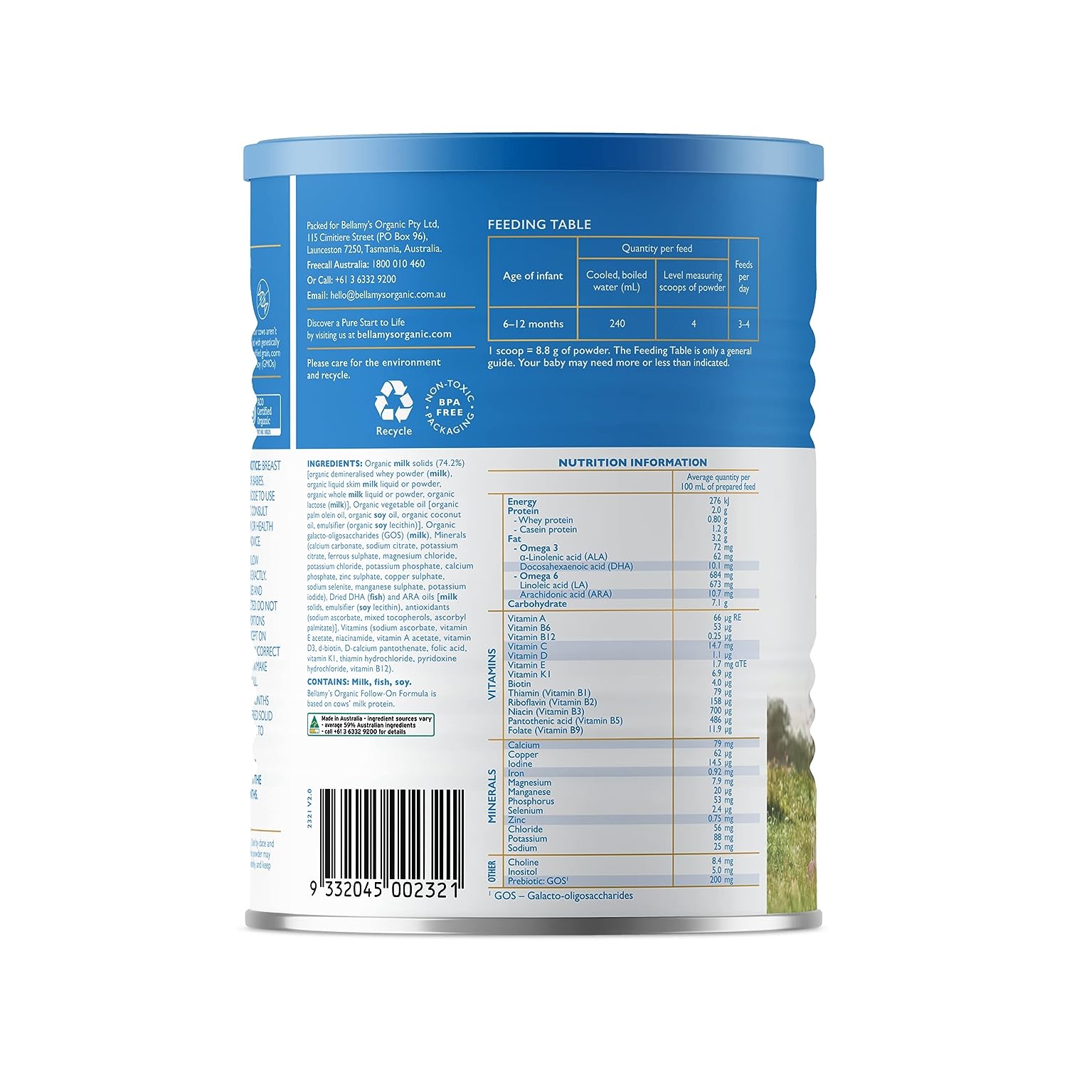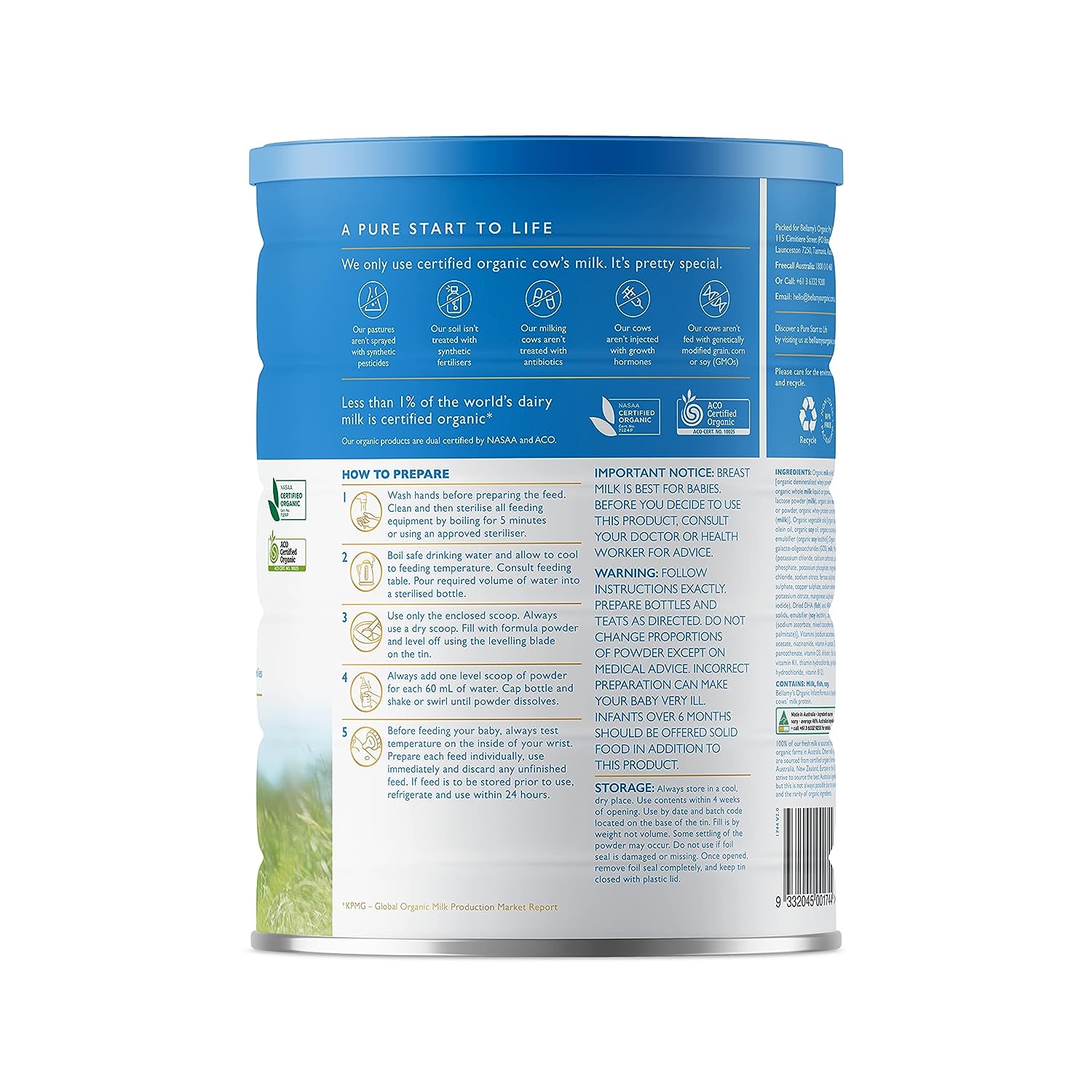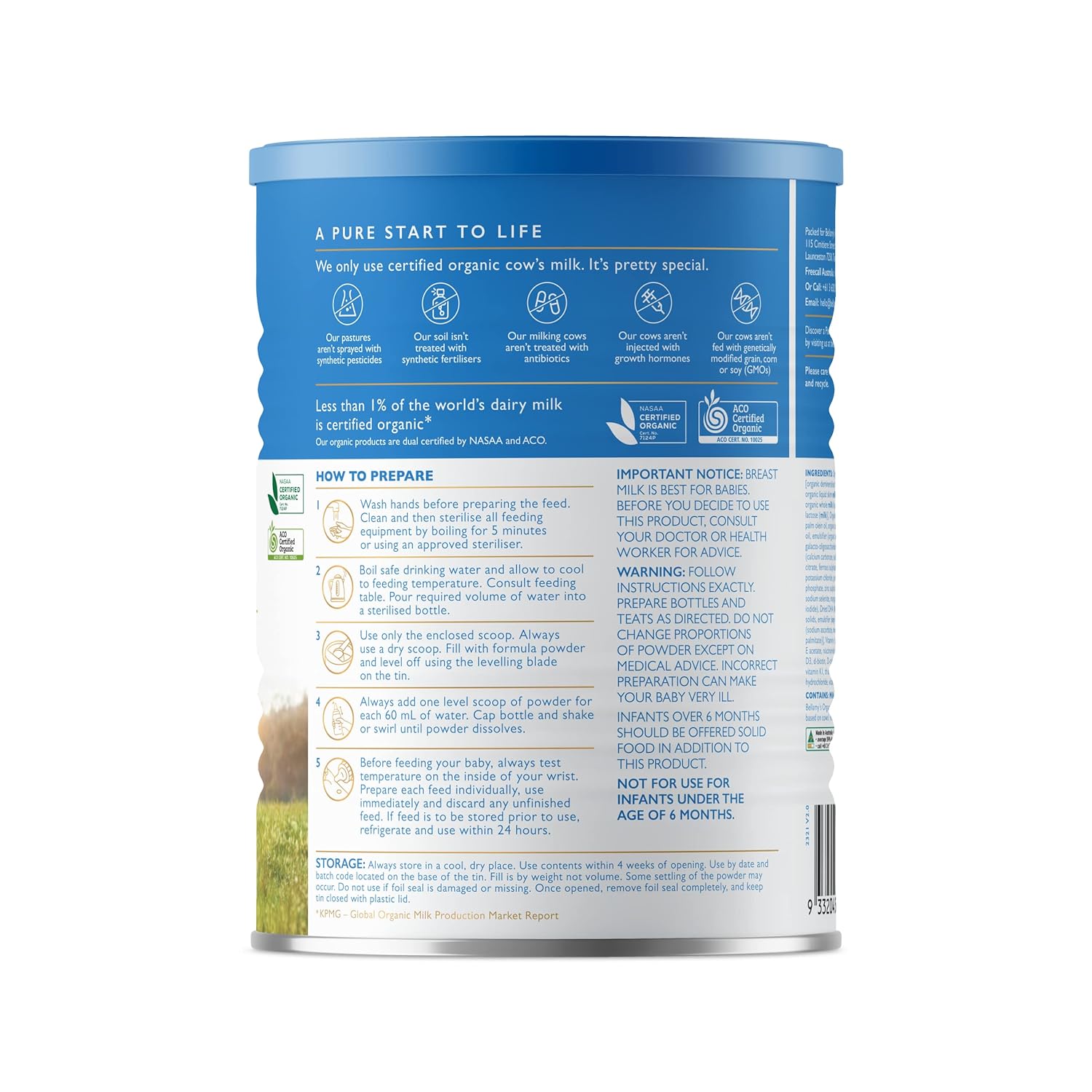 Australian dual certified organic. Australia’s #1 Organic Infant Formula Brand* *Data from IQVIA, National data, 52 weeks to June 2022