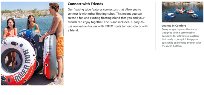 • Relax on a River, lake, or pool with comfort and ease