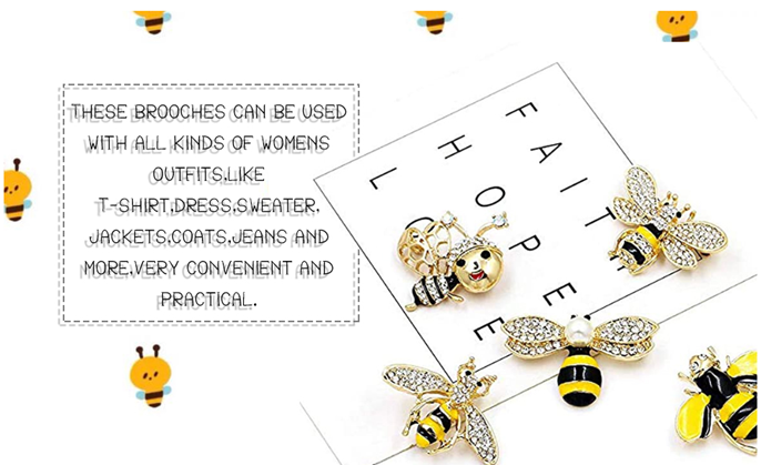 The package includes 10 pcs bee brooches of different patterns,you can choose your own needs according to different clothes.