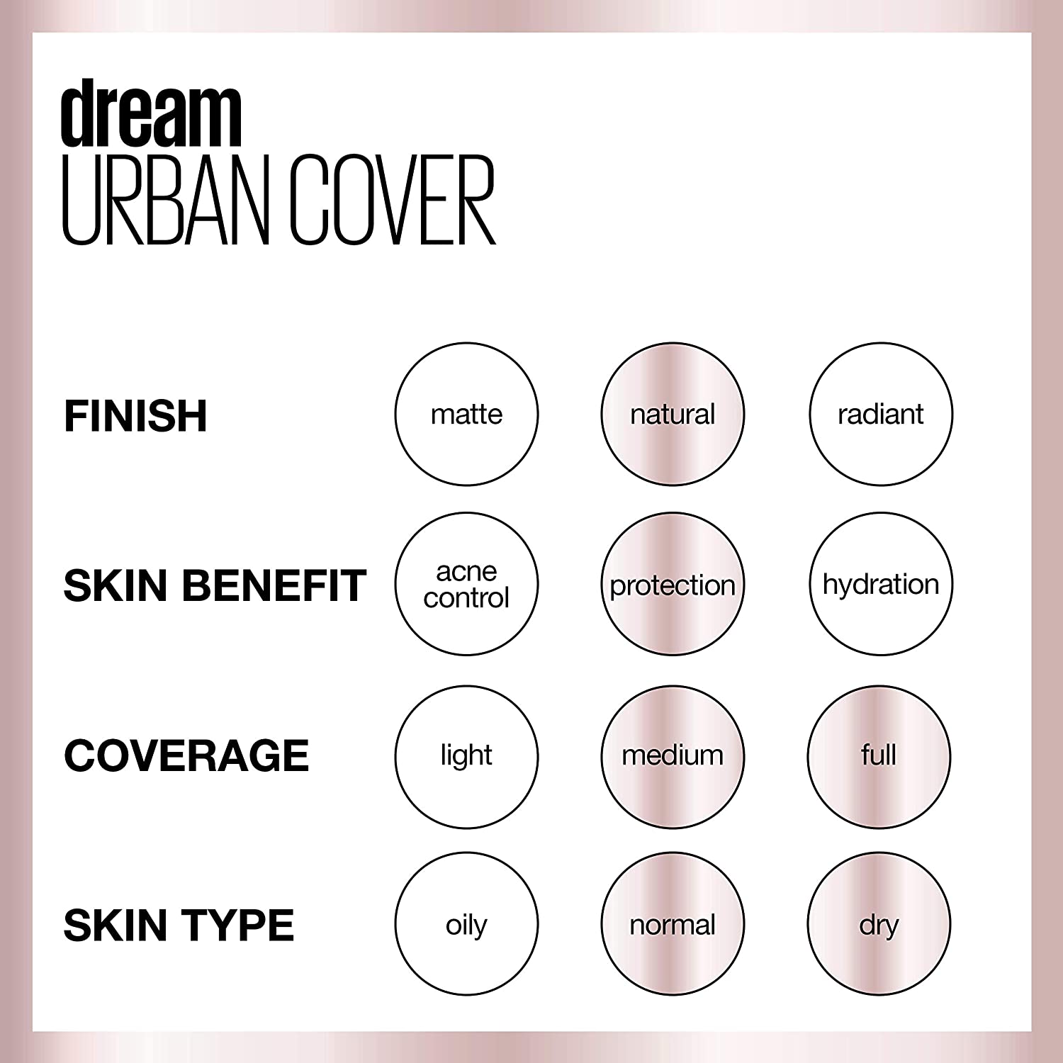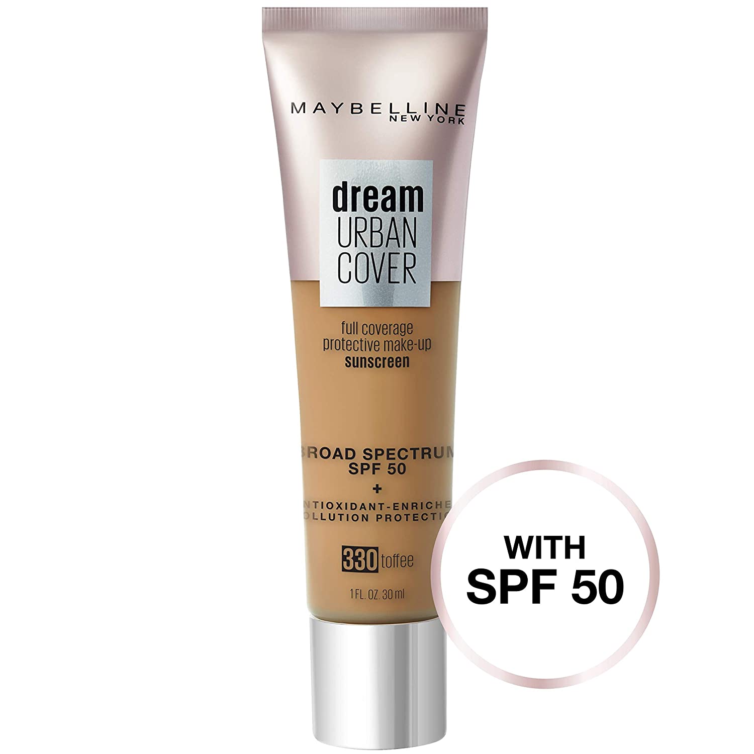 Maybelline Dream Urban Cover Flawless Coverage Foundation Makeup, SPF 50, Toffee