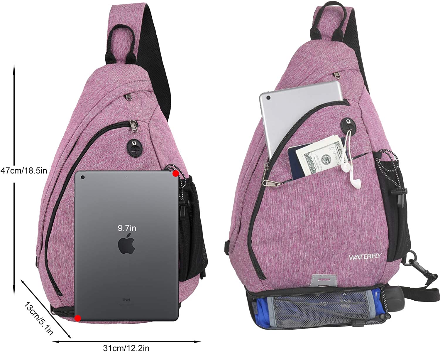WATERFLY Sling Bag Crossbody Backpack: Over Shoulder Daypack Casual Cross Chest Side Pack
