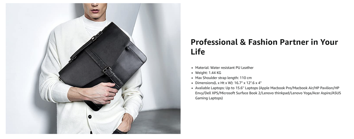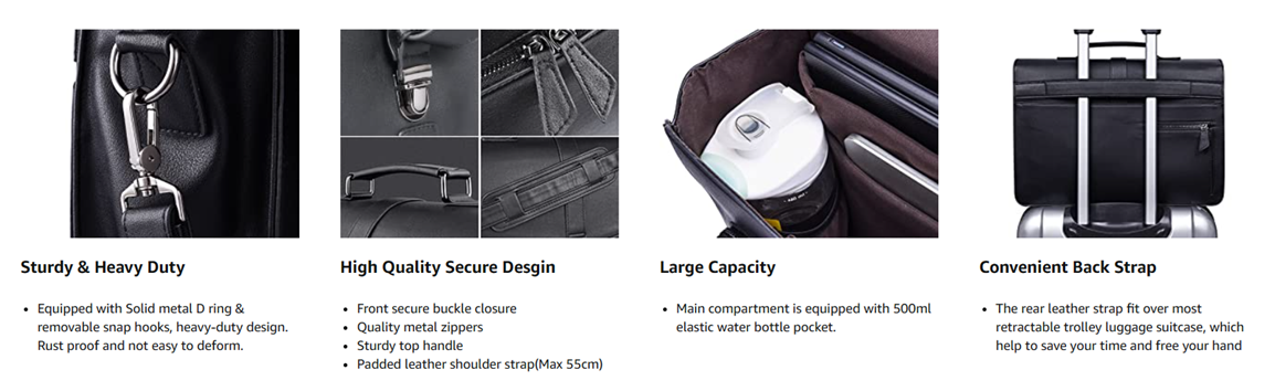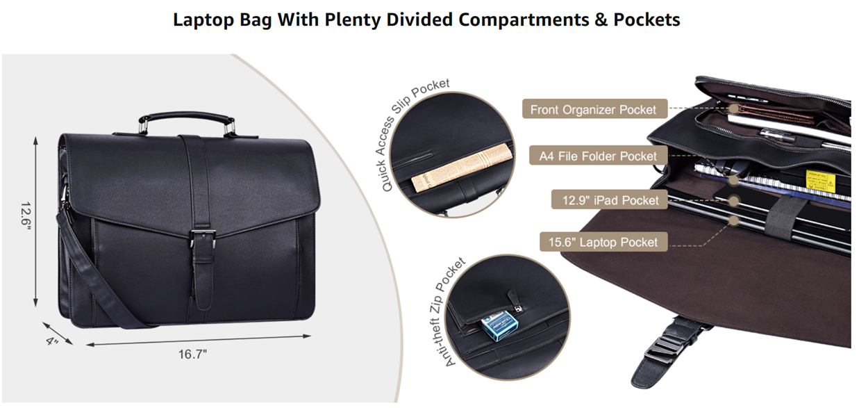 • Design Decency: This Estarer vegan leather (PU leather) briefcase is designed by our professional designers which sets you apart and outstandingly positioned in the crowd, makes you stand out as an organized person.