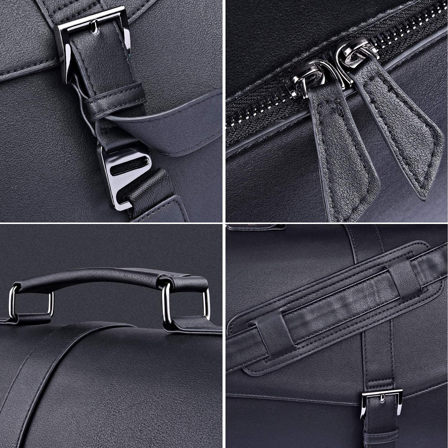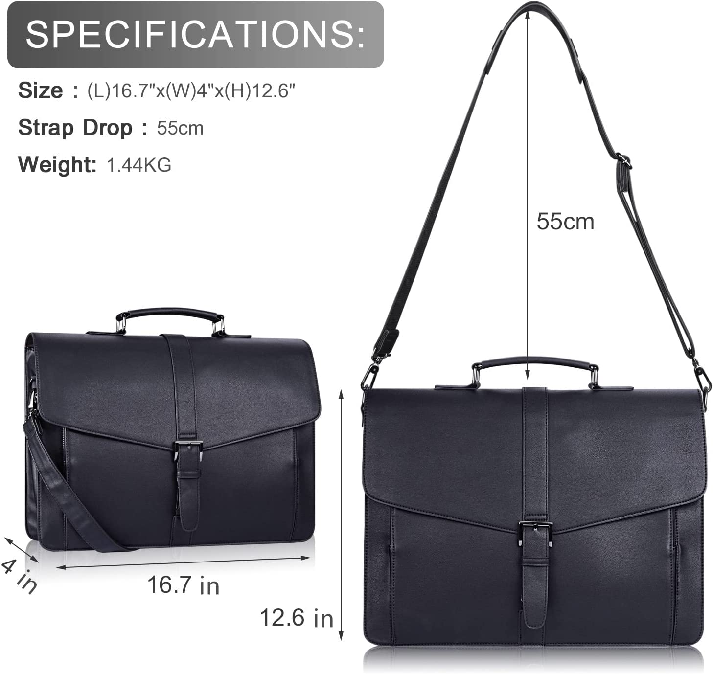 • High Quality Material: Vegan leather (pu leather), water-resistant. Briefcase size:17"(L)*4.5"(W)*12.5"(H). Strap length: max 62inch , min 20inch. Strap width: 1.2inch. Weight: 1.4kg, 3.09lb.