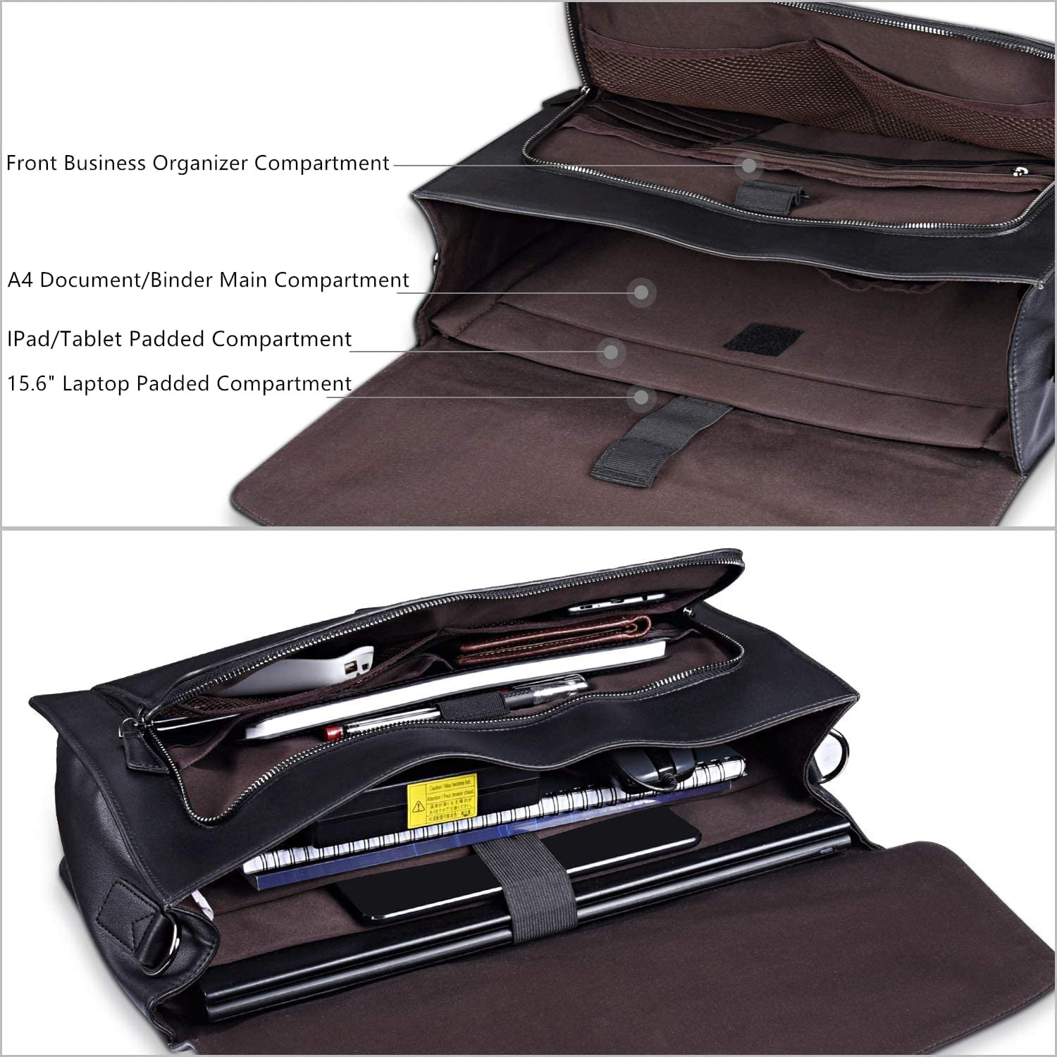 ESTARER Men's Leather Briefcase for Travel/Office/Business 15.6 Inch Laptop Messenger Bag