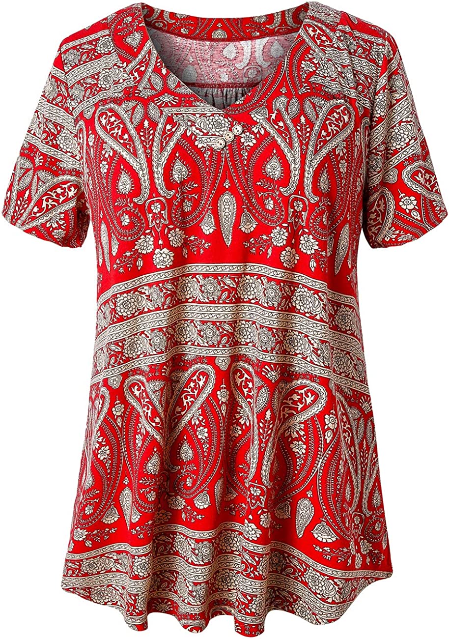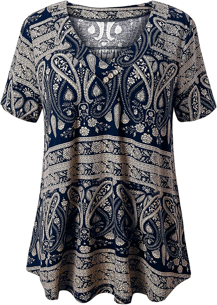 U.Vomade Women's Plus Size Tops Short Sleeve Blouses Flowy Summer Tunic Tops M-4X