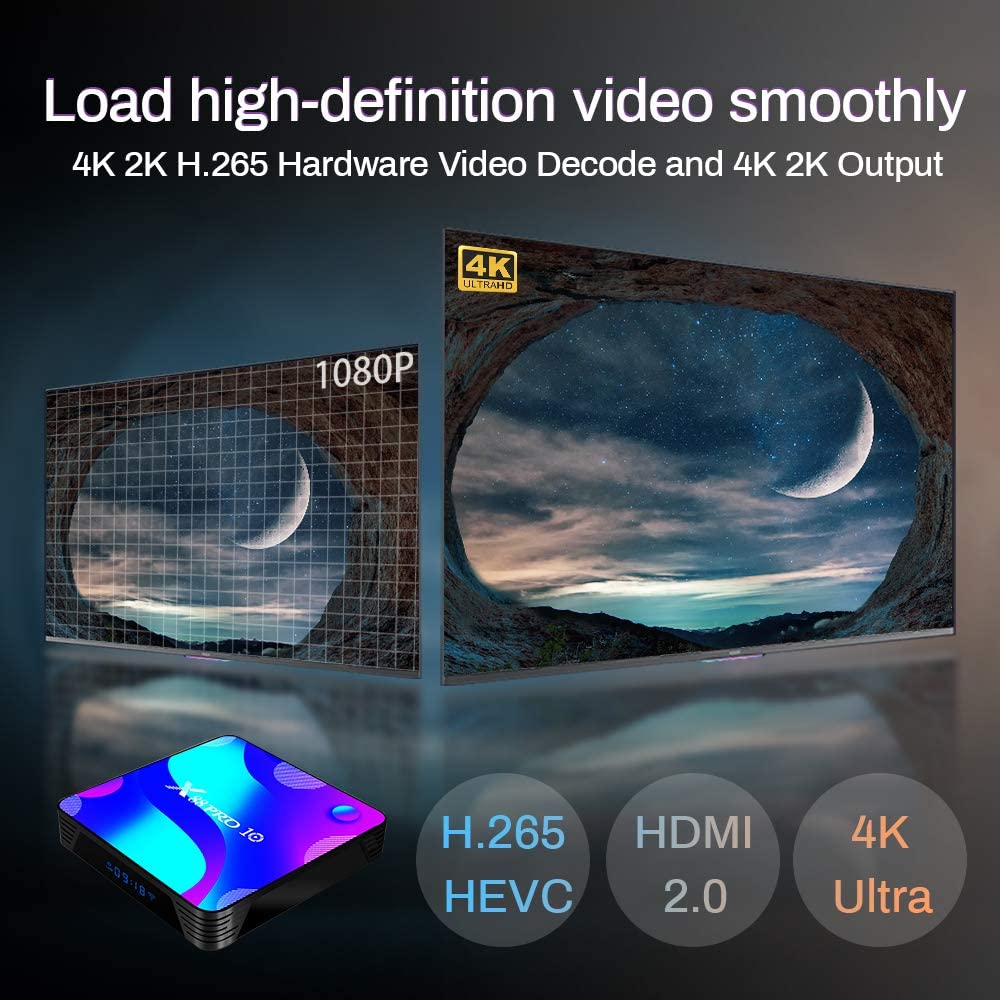 【4GB RAM & 64GB ROM】4gb RAM is largest running memory in andorid tv boxes, which will make sure higher performance and more stable operation system, supports smoothly movies without any buffering and freeze, no more crashes.Also, you can extended USB Mechanical Hard Disk 2.5/3.5inch up to 2TB Storage, much more space for your entertainment.