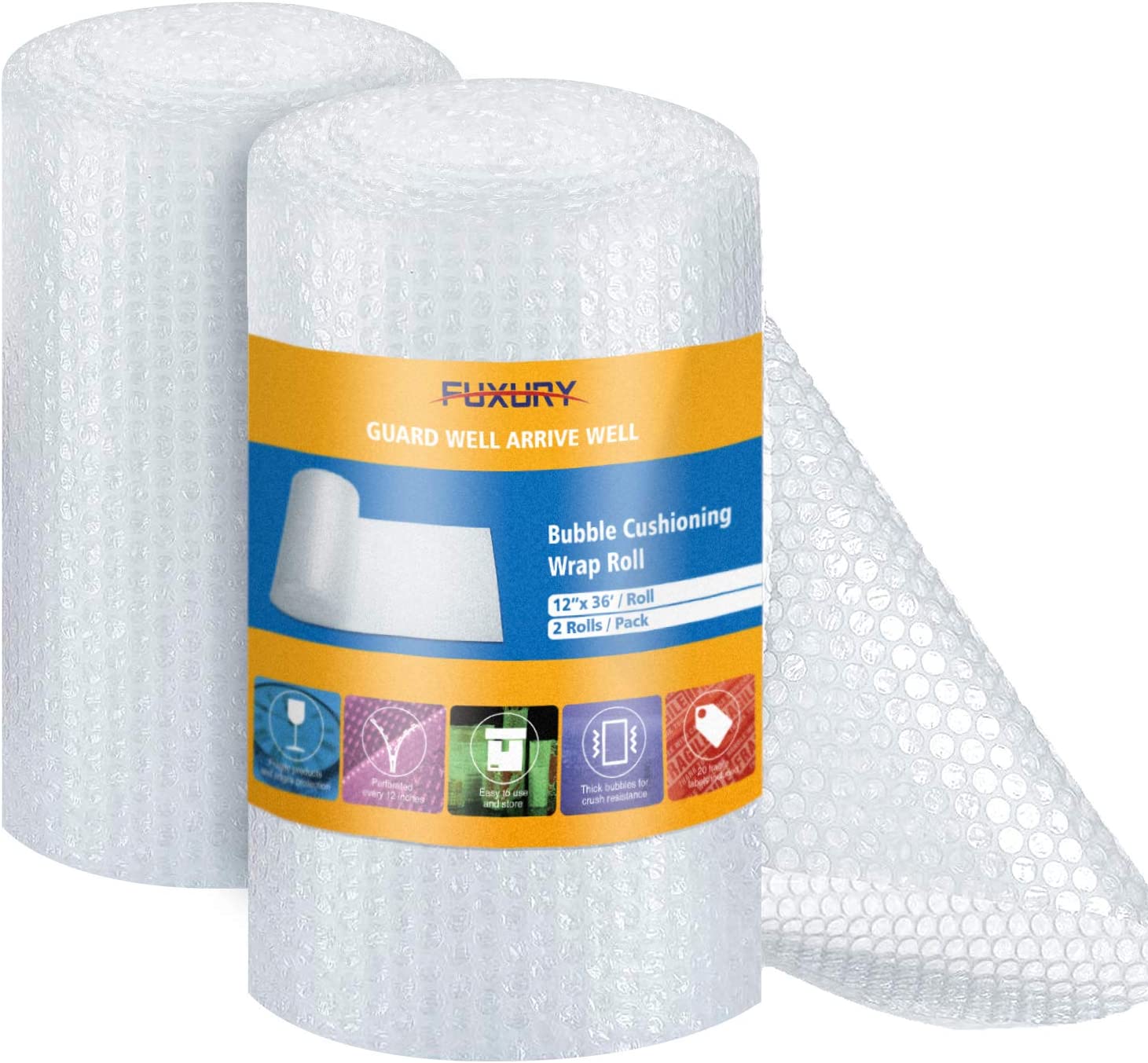 【Reusable and Lightweight】The air bubbles can be reused, two rolls, 12in x 36ft each. Our Fuxury Bubble Cushioning Wrap use nylon material is lightweight to save your money on shipping cost.
