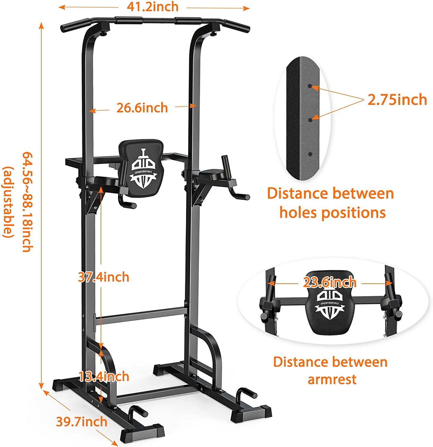 - 【Sturdy Construction】Comes with a 14-gauge heavy square steel frame constructed with scratch-resistant coat finish, our power tower can hold riders weight up to 400lbs and withstand long term use.