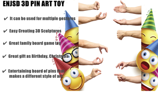 • 【3D PIN TOY】Pin art sensory toy is ideal for kids boys girls, you can press an object into the wall of this pin toy impression to leave an impressional profile, like a Batman toy statue, dinosaur toys, your handprint or facial contour and so on. ENJSD 3d pin art toy large will create inimaginable 3d sculptures. The push pin toy inspires children's boundless creativity and imagination.