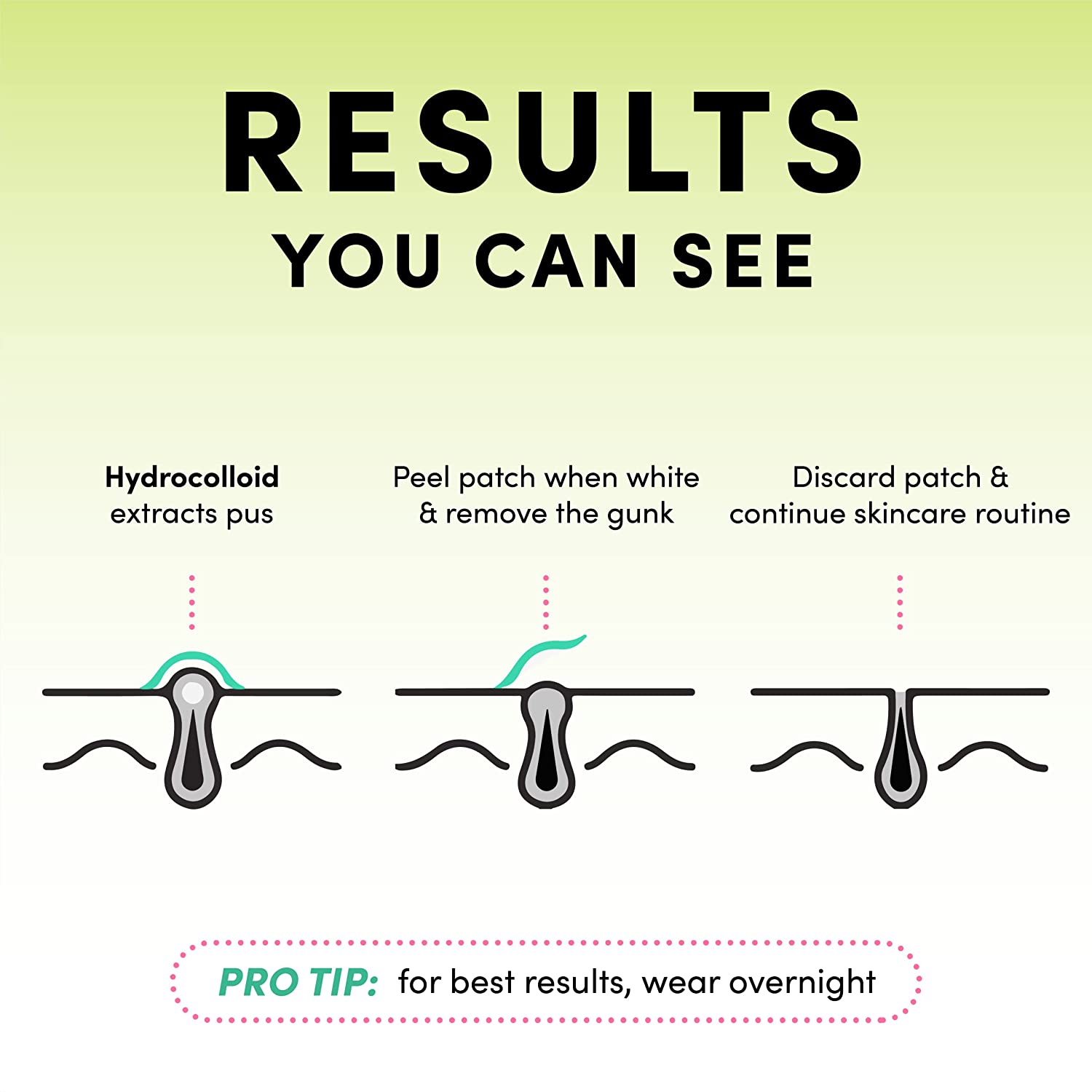• PROMOTES FASTER HEALING - For best results, wear for 6+ hours, or simply leave on overnight. You can tell the zit patch is ready to be removed when the clear center has turned opaque white.