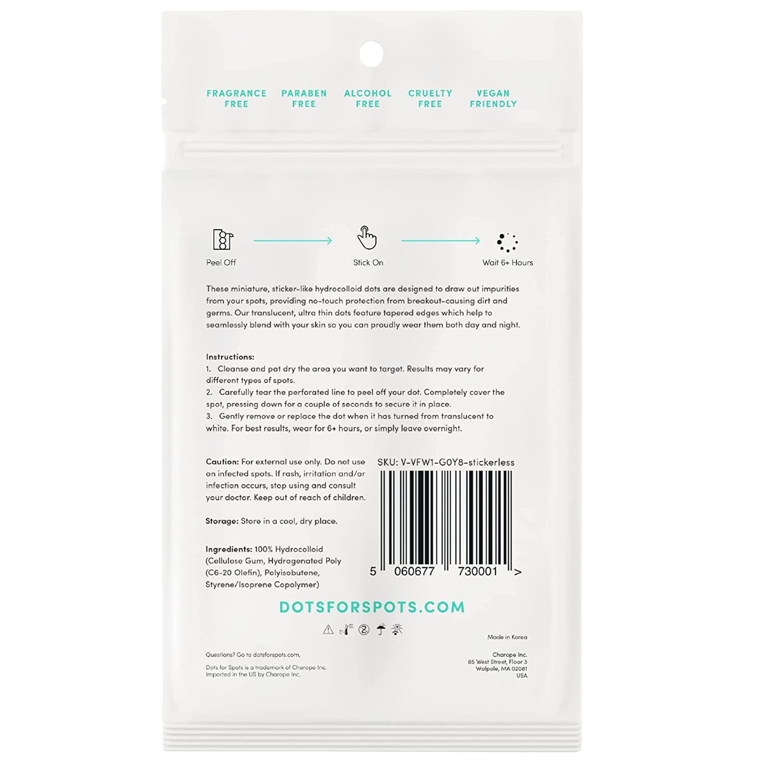 • VISIBLE RESULTS - Dots for Spots blemish patches act as a protective cover to prevent picking, touching or popping of sensitive skin. They also work to minimize redness and the appearance of active breakouts.
