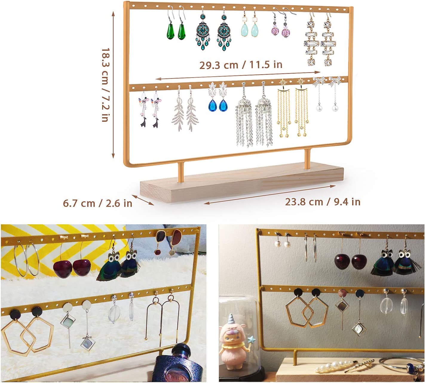 46 Holes FOR EARRINGS- This jewelry rack can hold up to 22 pairs of earrings . You’ll be able to hang up your favourite studs, dangle earrings, and hoops with ease. No longer do you need to worry about losing the backs of your earrings. This holder can accommodate push backs, screw backs, butterfly backs, and locking backs.