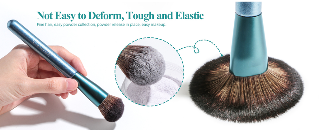 Dense and soft hair, no shed, smooth and silky to pick up powder easily.