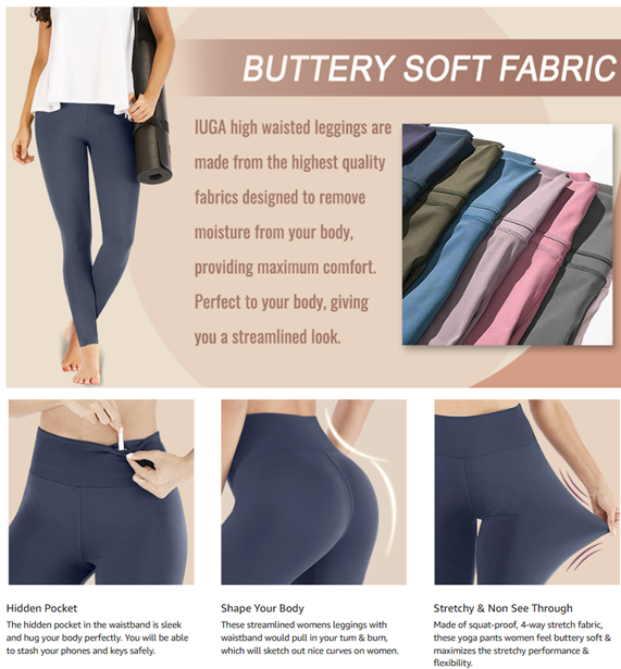 Ultra Soft & Non See-Through: These IUGA yoga leggings are made from 20% spandex which are super stretchy and 80% polyester which retains its shape that makes the yoga pants become very durable, easily washed and dried. In addition, Our Non-See-Through fabric stretches to all directions allowing you to move freely without any restrictions.