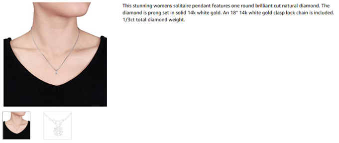 - 14K WHITE GOLD ROUND DIAMOND SOLITAIRE NATURAL DIAMOND PENDANT 14K: Classic womens pendant features a 1/3ct round brilliant cut genuine natural diamond. The diamond is four prong set in solid 14k polished mounting. An 18" 14k chain is included. 14k