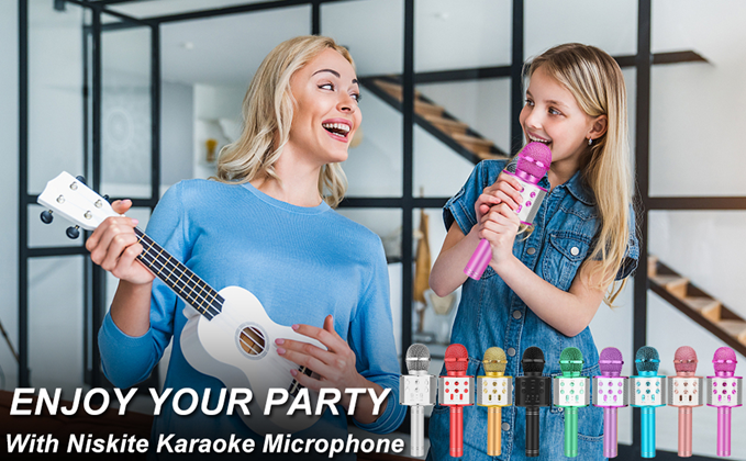Niskite Karaoke Microphone for Kids Adults,Portable Bluetooth Microphone for Singing,Professional Voice Changer Blue Microphone Wireless,Birthday Gifts for 3 4 5 6 7 8 + Year Old Boys Girls Toys
