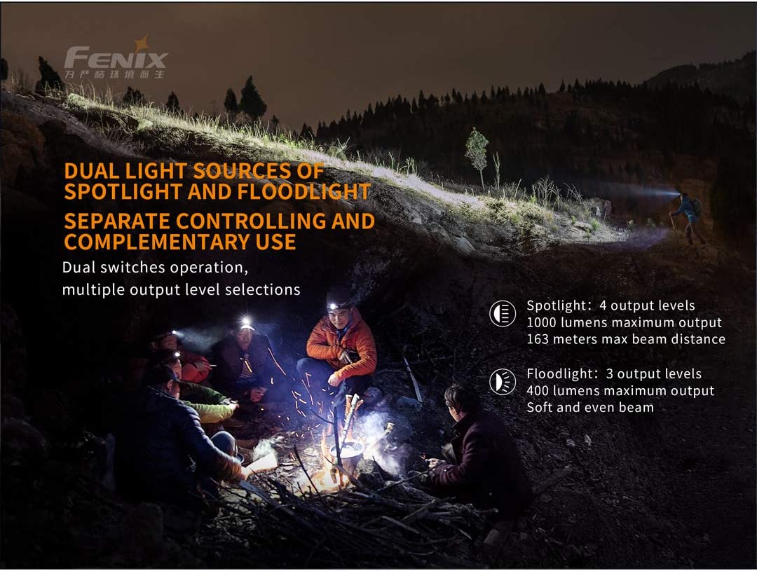Fenix HM65R Headlamp, 1400 Lumen USB-C Rechargeable Spot and Flood Dual Beam with LumenTac Organizer