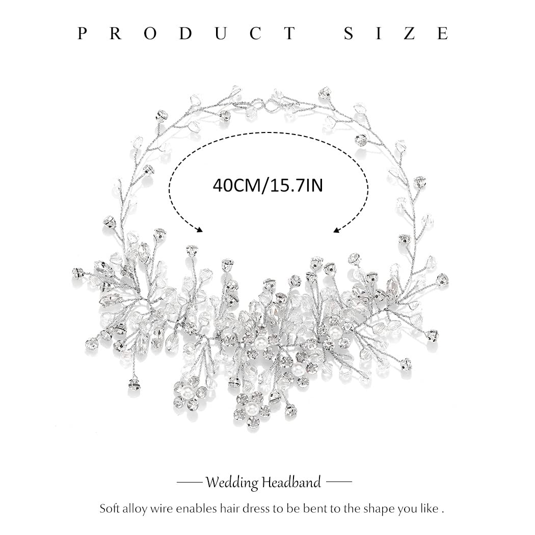• ★Bridal head pieces for bride and bridesmaids are made of Alloy Wire,Pearl,Flower. 2 bobby pins and 1 ribbon for free. Gold,Silver and Rose Gold color for choose.Color:Silver;
