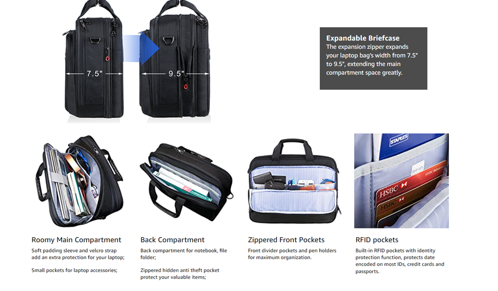 - EXPANDABLE CAPACITY: This laptop briefcase is designed with expandable capacity, the expansion zipper will extend the main compartment space greatly, in which there will be more space for your clothing and files.
